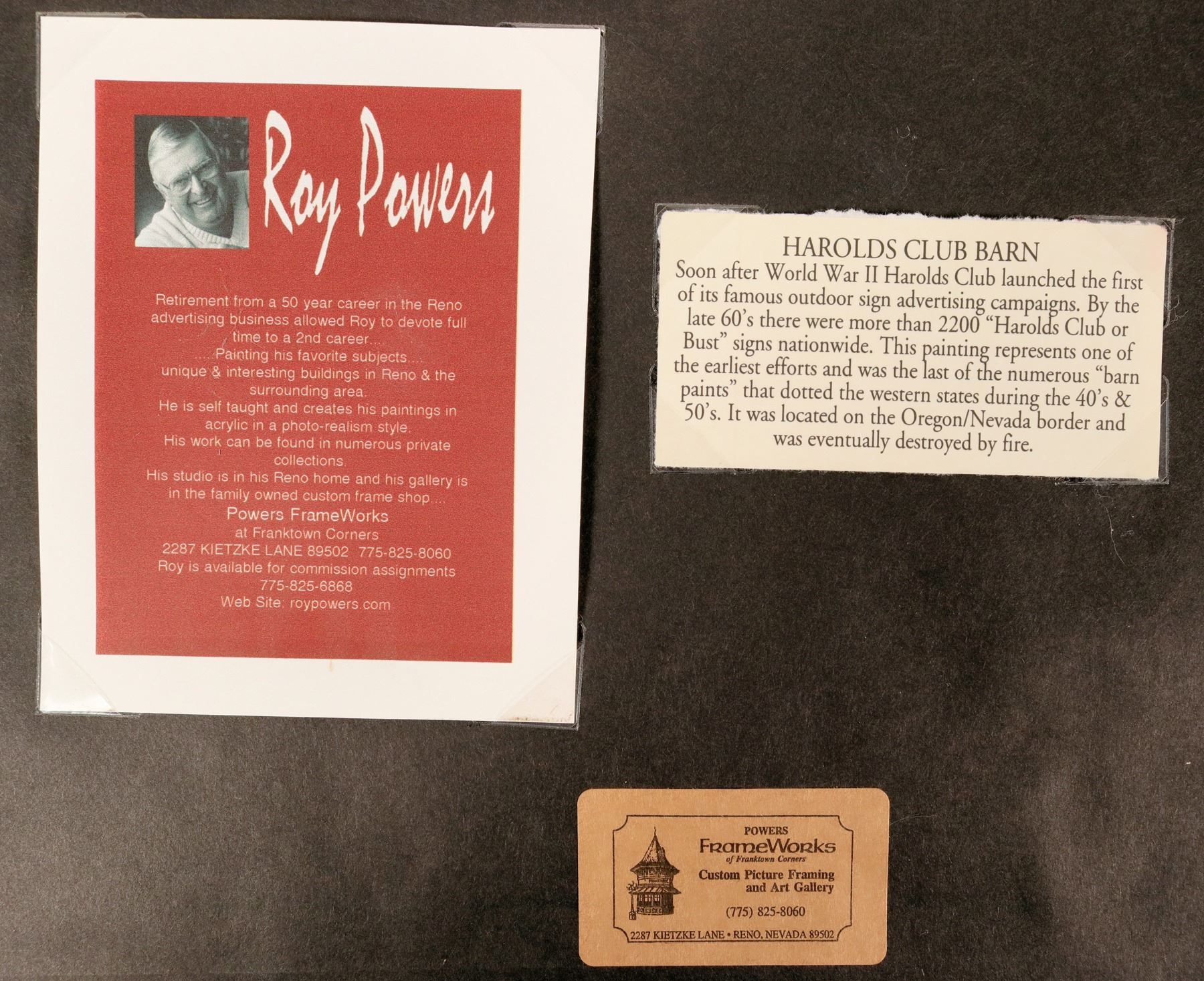 Beautifully framed Reno artist Roy Powers, matted with internal wood frame. Powers was a decades long well known and popular Reno artist. This print in the theme of the famous Harolds Club is quintessential Reno. Signed and numbered, 58/200.