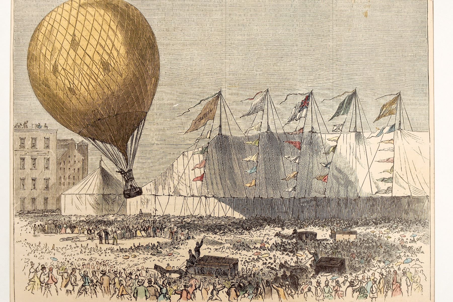 Three prints from Harper's Weekly Magazine of various hot air balloons. matted pieces range in size from 5"x 6" to 7"x 9". They are in nice condition, ready to frame. Please see photos for more details.