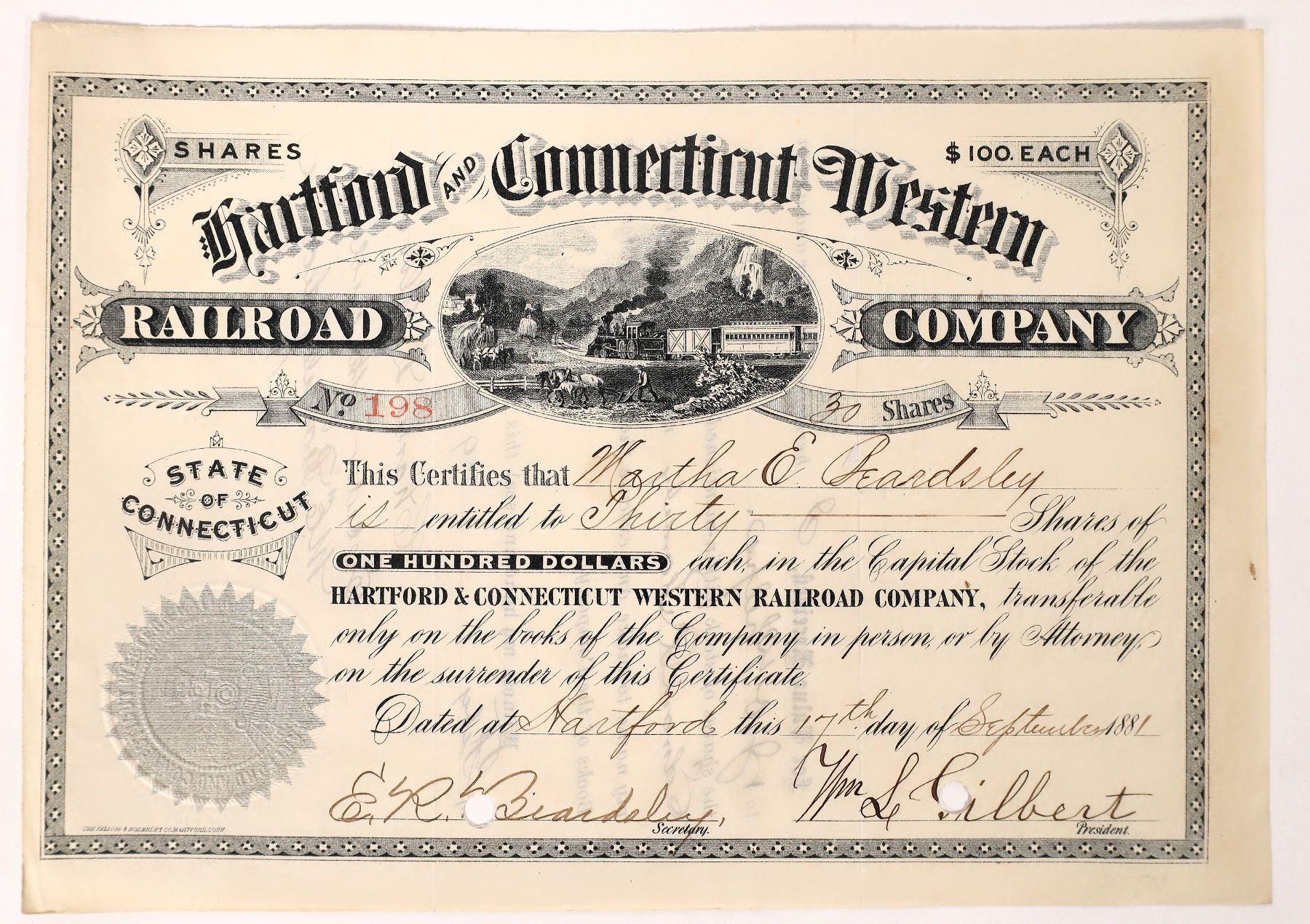 I/C 1881 Hartford and Connecticut. Signed by president Gilbert. Nice scenic vignette. Connecticut