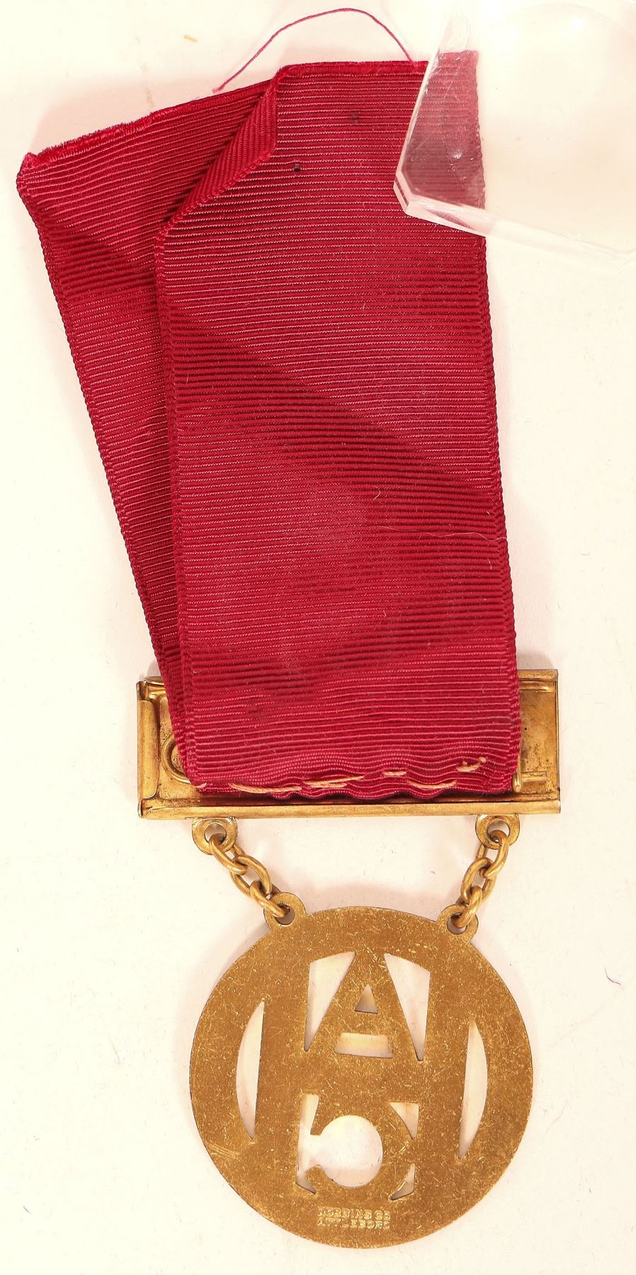 The Harvard Club of Chicago badge, c1926. 3.75" long, brass, ribbon and medallion with initials, A. H. C. [Chicago] [Illinois]
