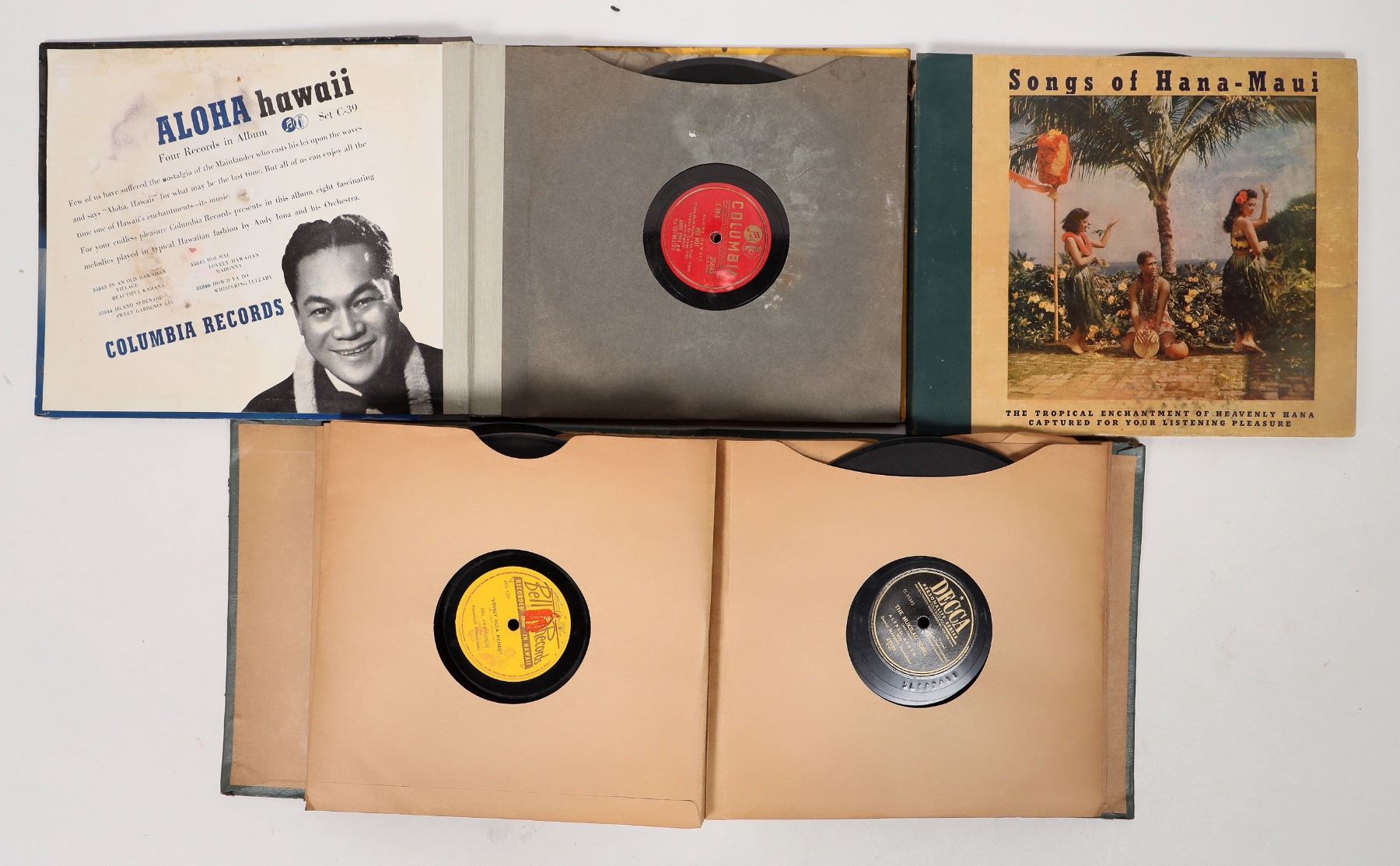 Songs of Hana-Maui, 4 discs, mostly better condition. Aloha Hawaii, Andy Iona and his orchestra, generally better condition. 7 assorted discs in a binder, generally better condition. Sold as is.