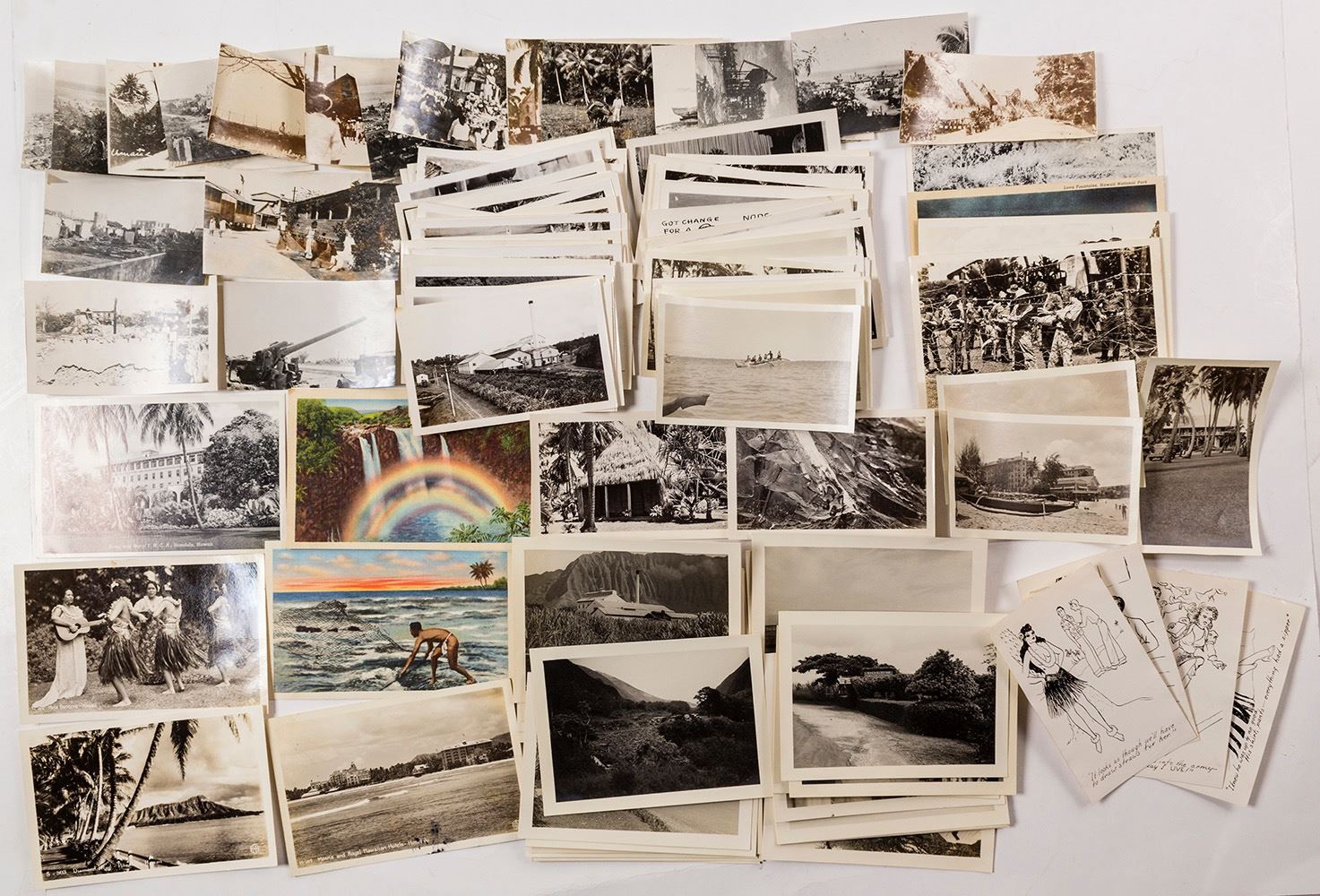 Large group of Hawaii photographs taken just prior to World War II, approximately 80 photographs. Group also contains a number of postcards just after World War II as well as of an original photograph collection of Guam during the war, about 20 photos. A nice group, historical.