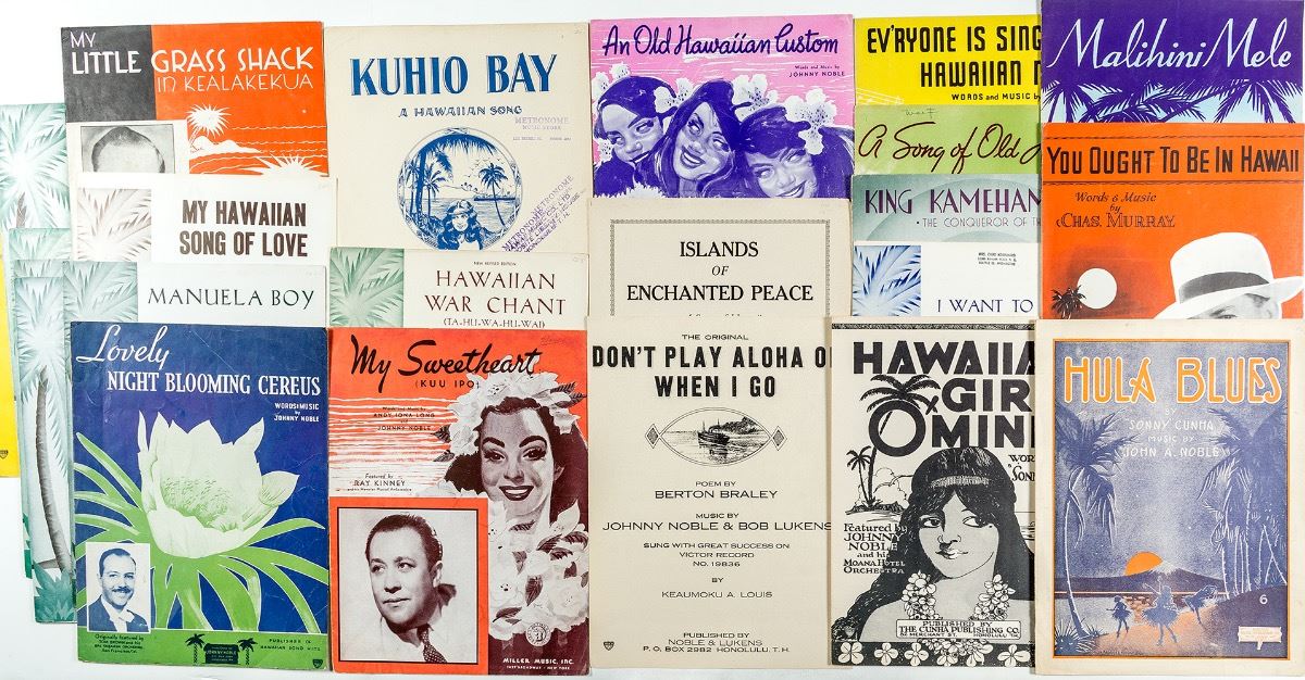 21 Songbooks by Johnny Noble, including: A Hawaiian Love Song, I Wonder Where My Hula Girl Has Gone, Hula Blues, Pretty Red Hibiscus, Night Blooming Cereus, Don't Play Aloha Oe when I Go; and many more. Also, one book by R. Alex Anderson and one by Chas. Murray. (Prag Collection) City: State: Hawaii Date: ID# 31630