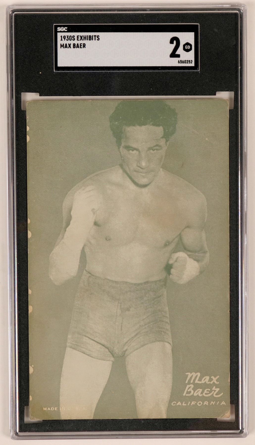 Listed in Ring Magazine as #22 of 100 greatest punchers all-time, Max Baer gained new popularity in the 60's, when his sons Max Baer Jr starred on "The Beverly Hillbillies." Card is in good condition. See photos for more details.