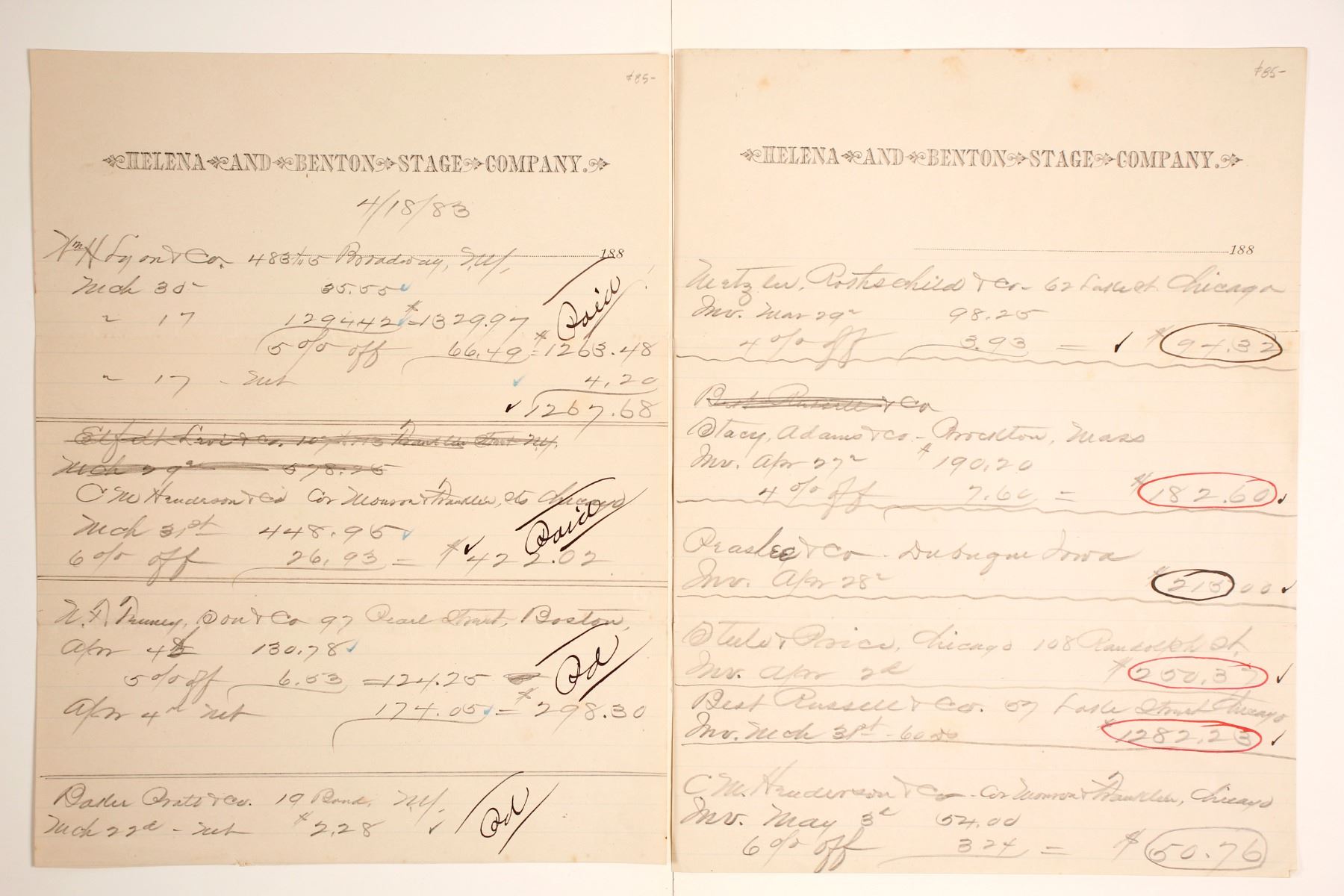 Rare, 2 pages of Accounts & Statements from Helena & Benton Stage Company.