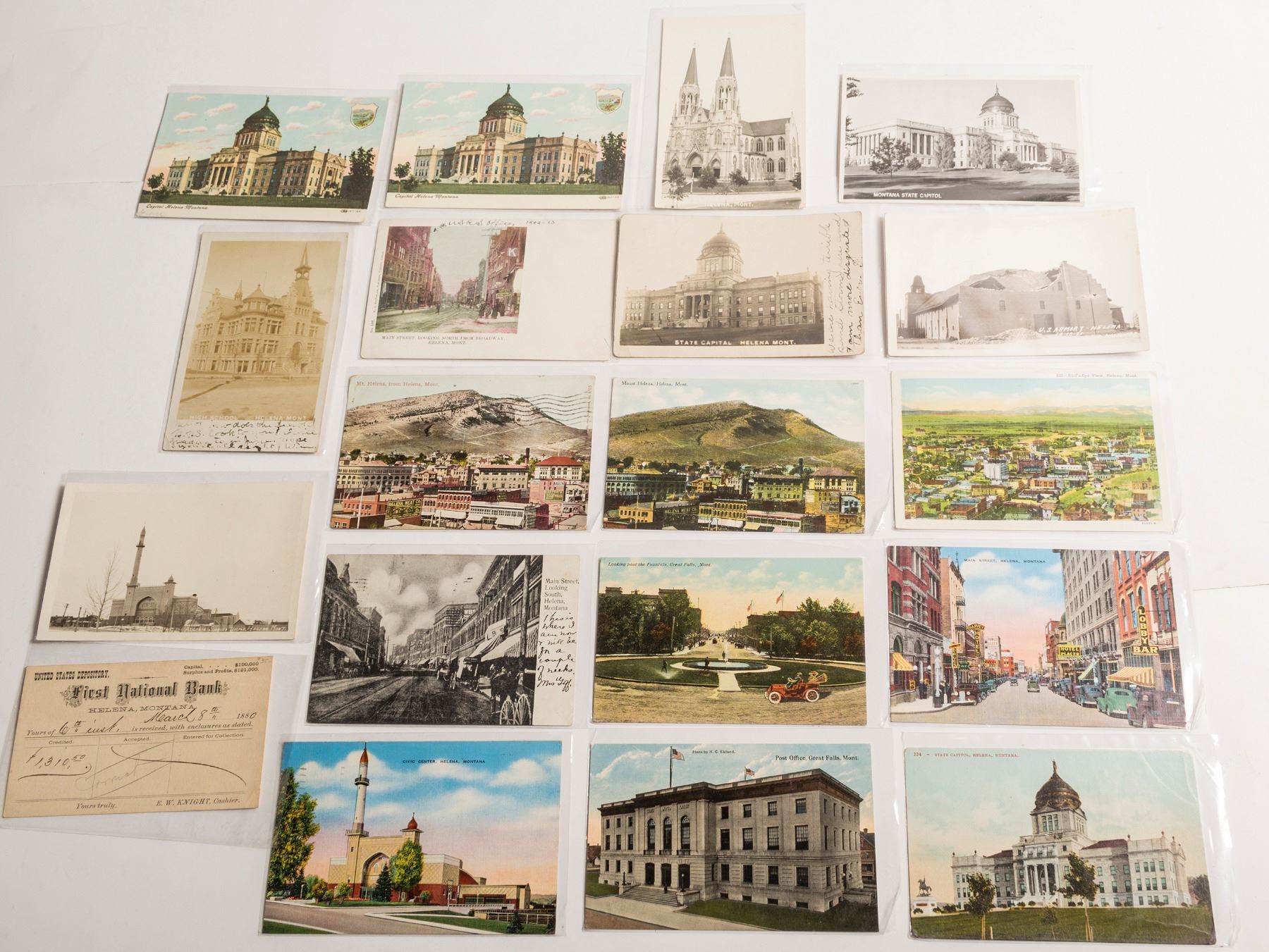 19 total cards. 6 black and white RPC's. 1905 to 1937. Includes a buggy laden main street (1905), state capitol, US Armory (1937, Jorud photo), Old High School (1907), Algeria Shrine / Civic Center, St. Helena Cathedral, overview, Mount Helena.