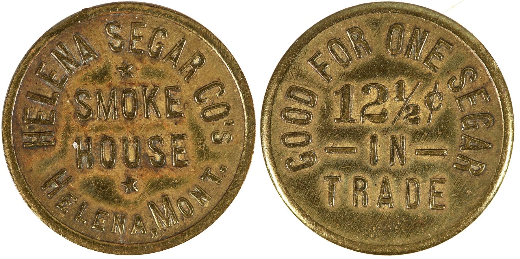 HELENA SEGAR CO'S / SMOKE / HOUSE / HELENA, MONT. // GOOD FOR ONE SEGAR / 12Ω¢ / IN / TRADE; br., rd., 21 mm.