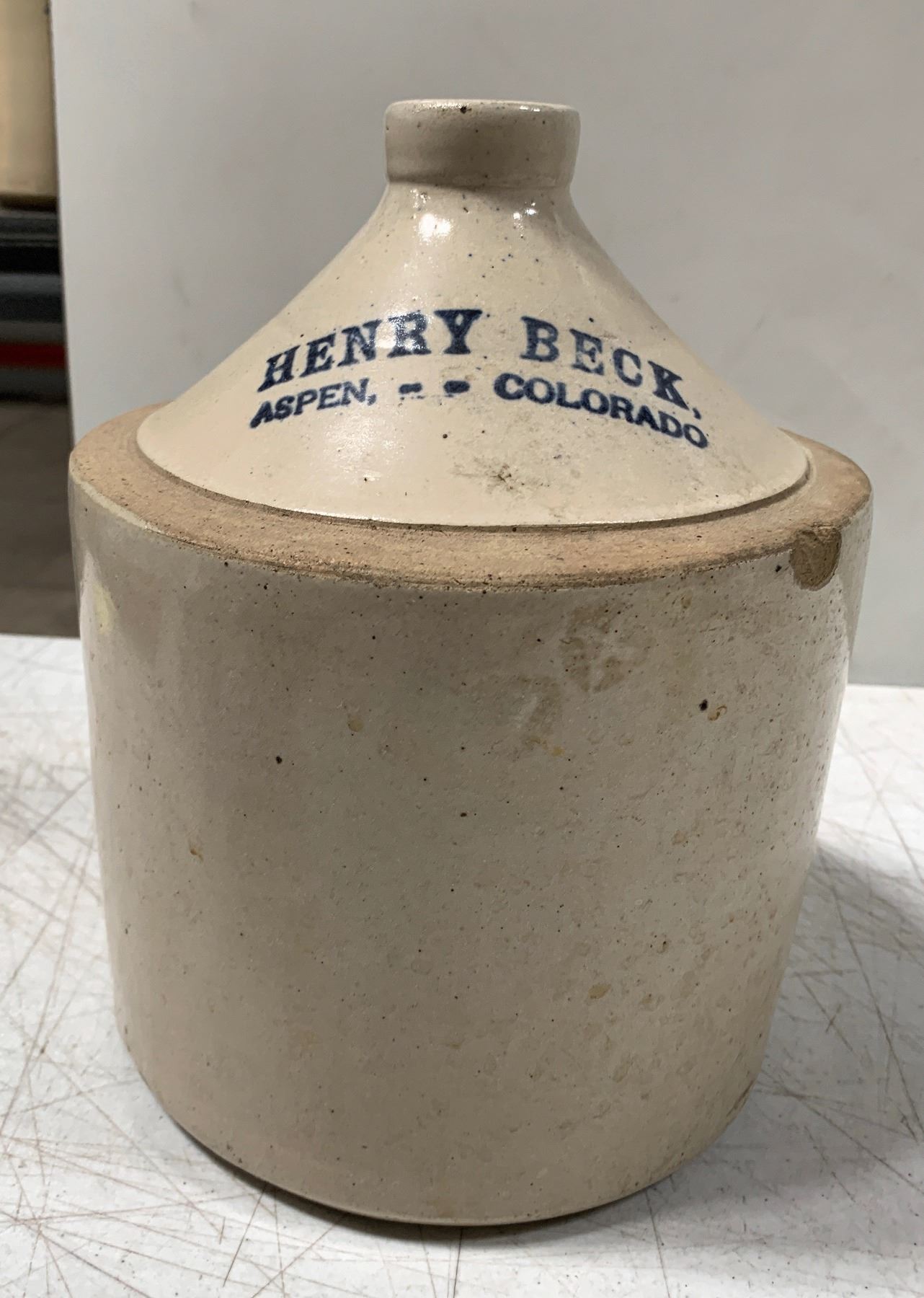 J-4 in Preble. One gallon. 7" diam., 9.25" tall. Shoulder chip.