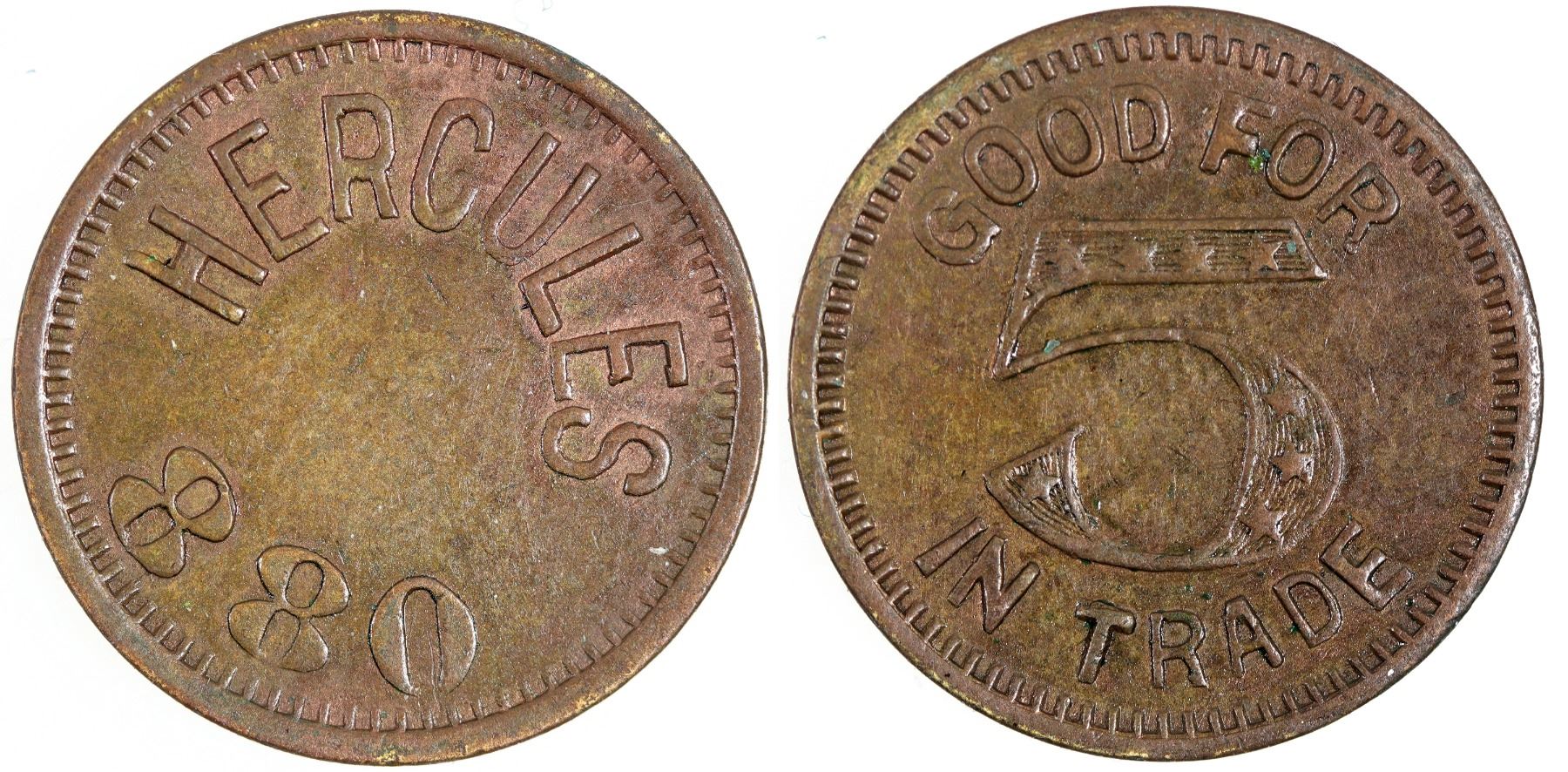 Rare .75" brass Hercules/880//GF/5c/IT. California Hercules