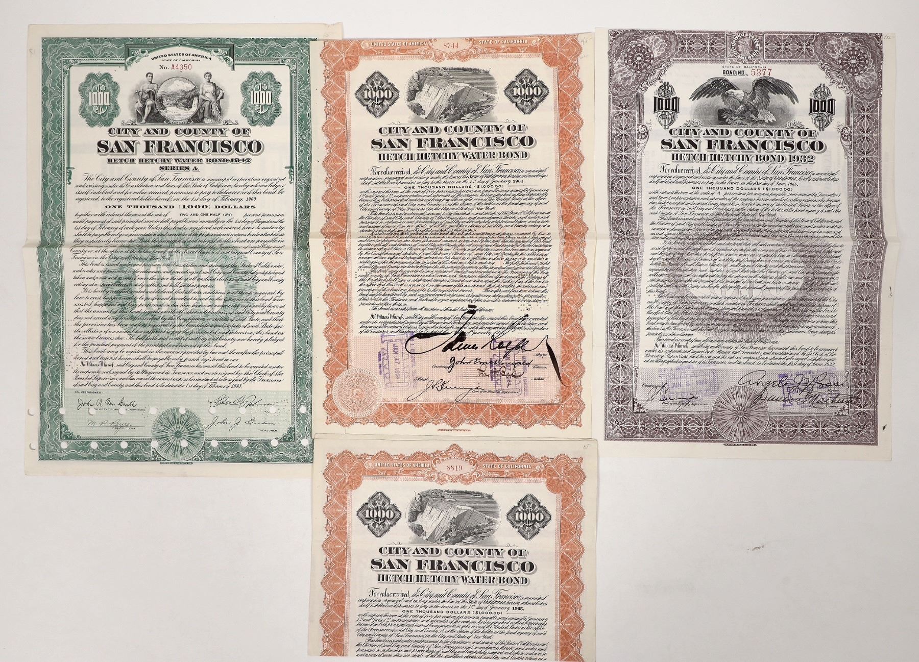 4x Hetch Hetchy water bonds. 2x 1925, 1932, 1948.