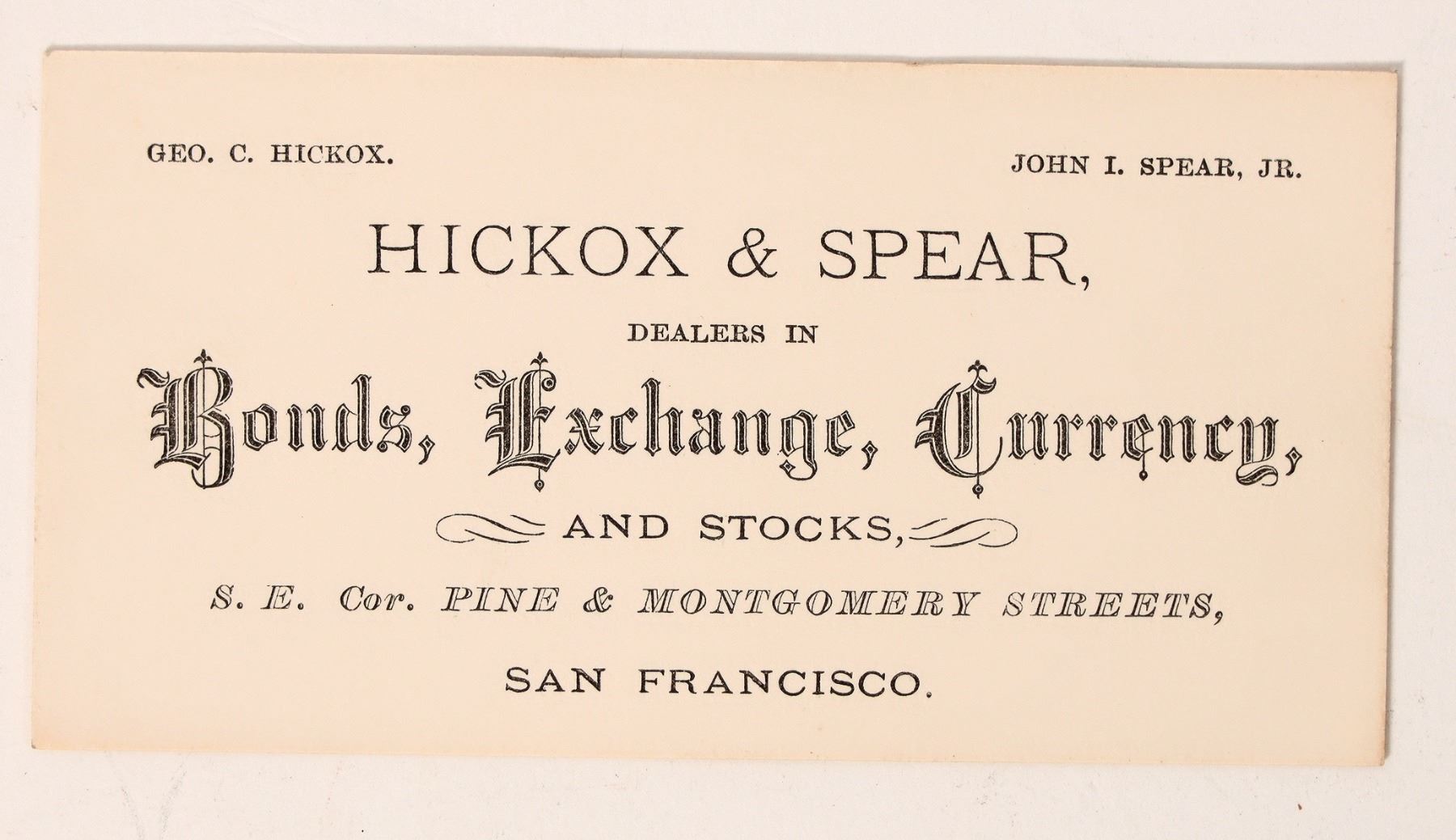 A perfect addition to your collection to compliment the rare and colorful RN checks from Hickox & Spear. c. 1875[ San Francisco California