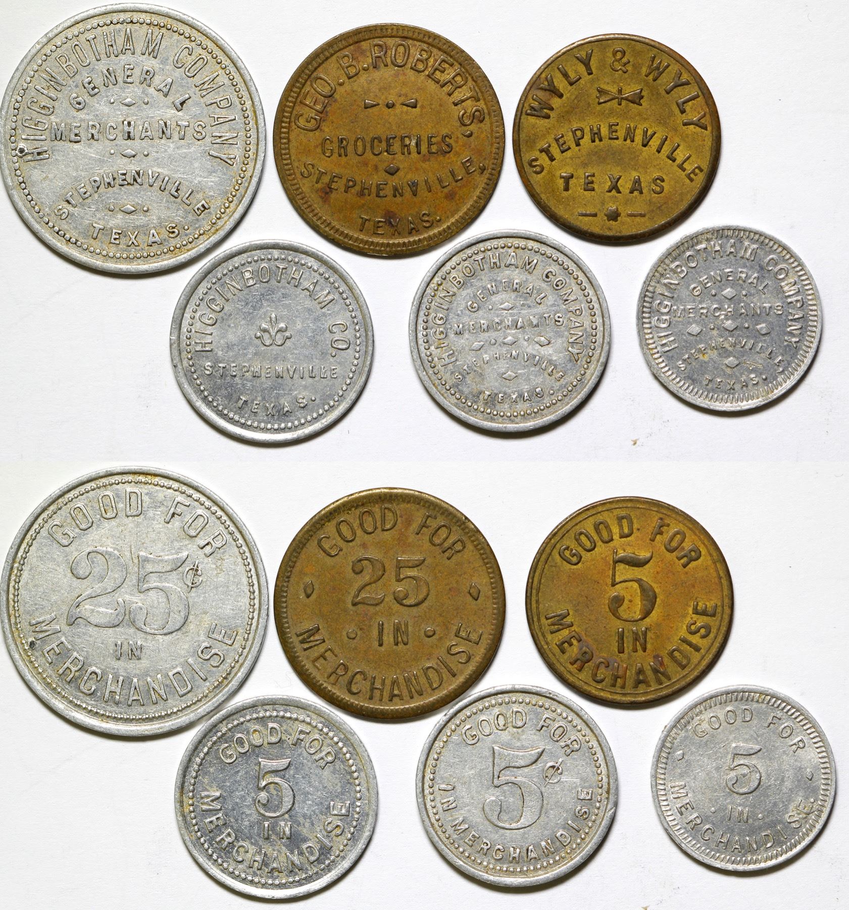 Six pieces, Four from Higginbotham Company, one from Geo. B. Roberts, and one from Wyle & Wyle State: Texas City: Stephenville Date: HWAC# 85310