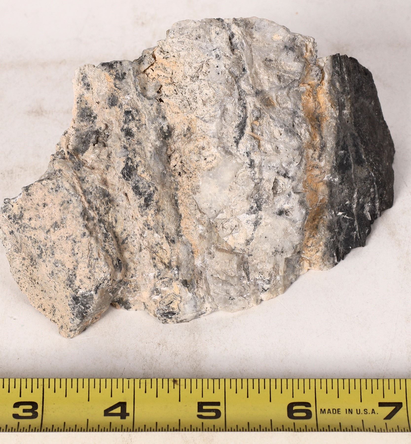 Ivanhoe district, Elko County. 5 x 3 x 2.5" Quartz and calcite with ruby silver minerals in a banded breccia with quartz pseudomorph of calcite. This mine is known for disseminated gold which is not visible in this specimen but may be throughout in microform. Elko County Nevada