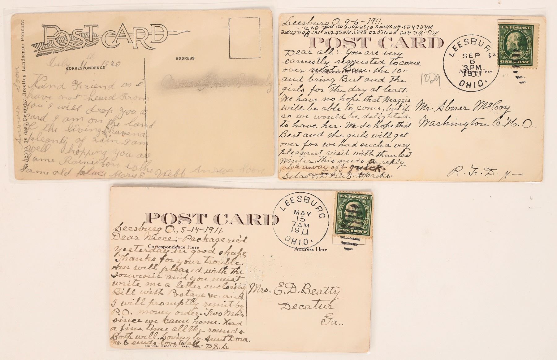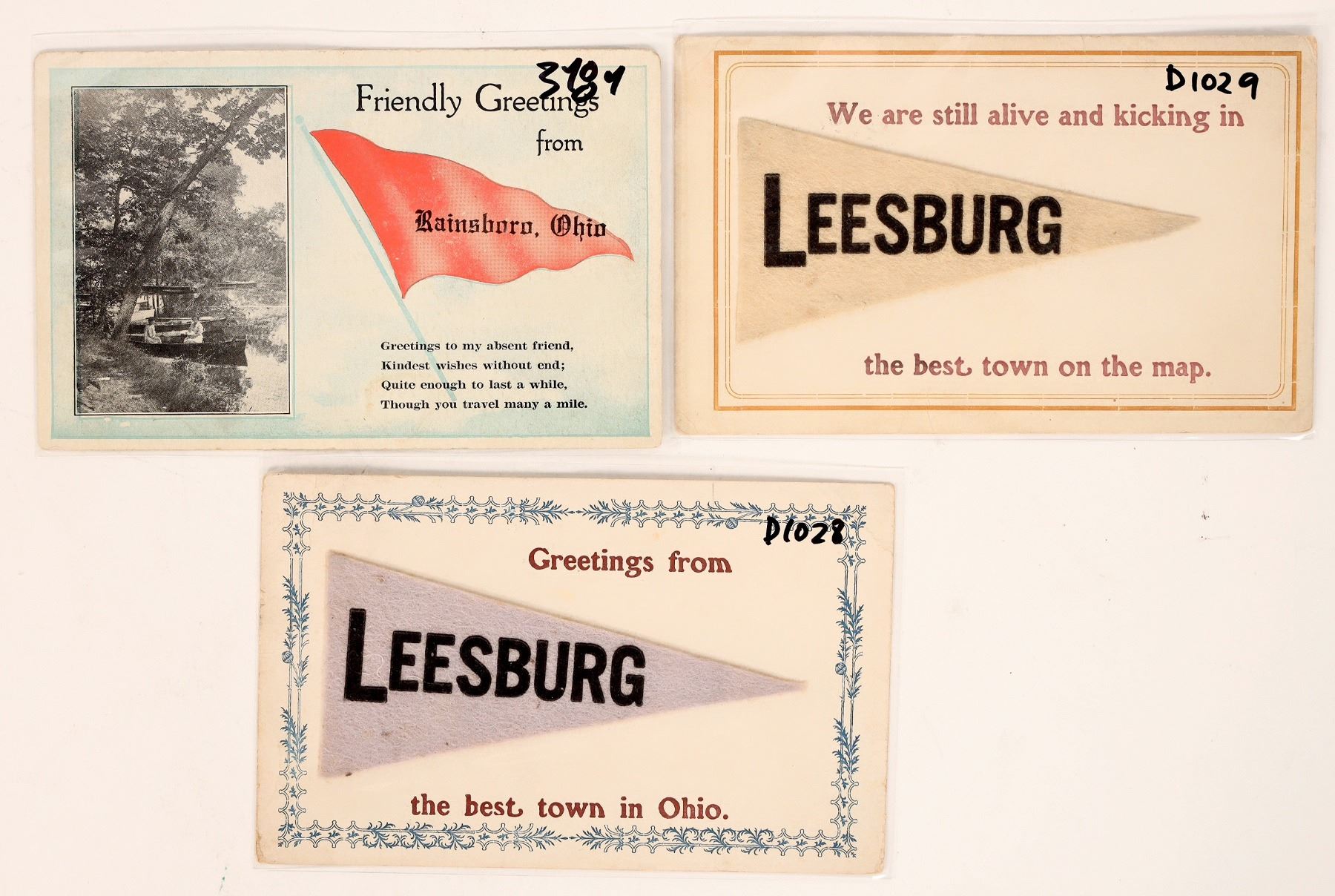3 pennant postcards. 2 Leesburg, 1 Rainsboro.[ Highland County Ohio