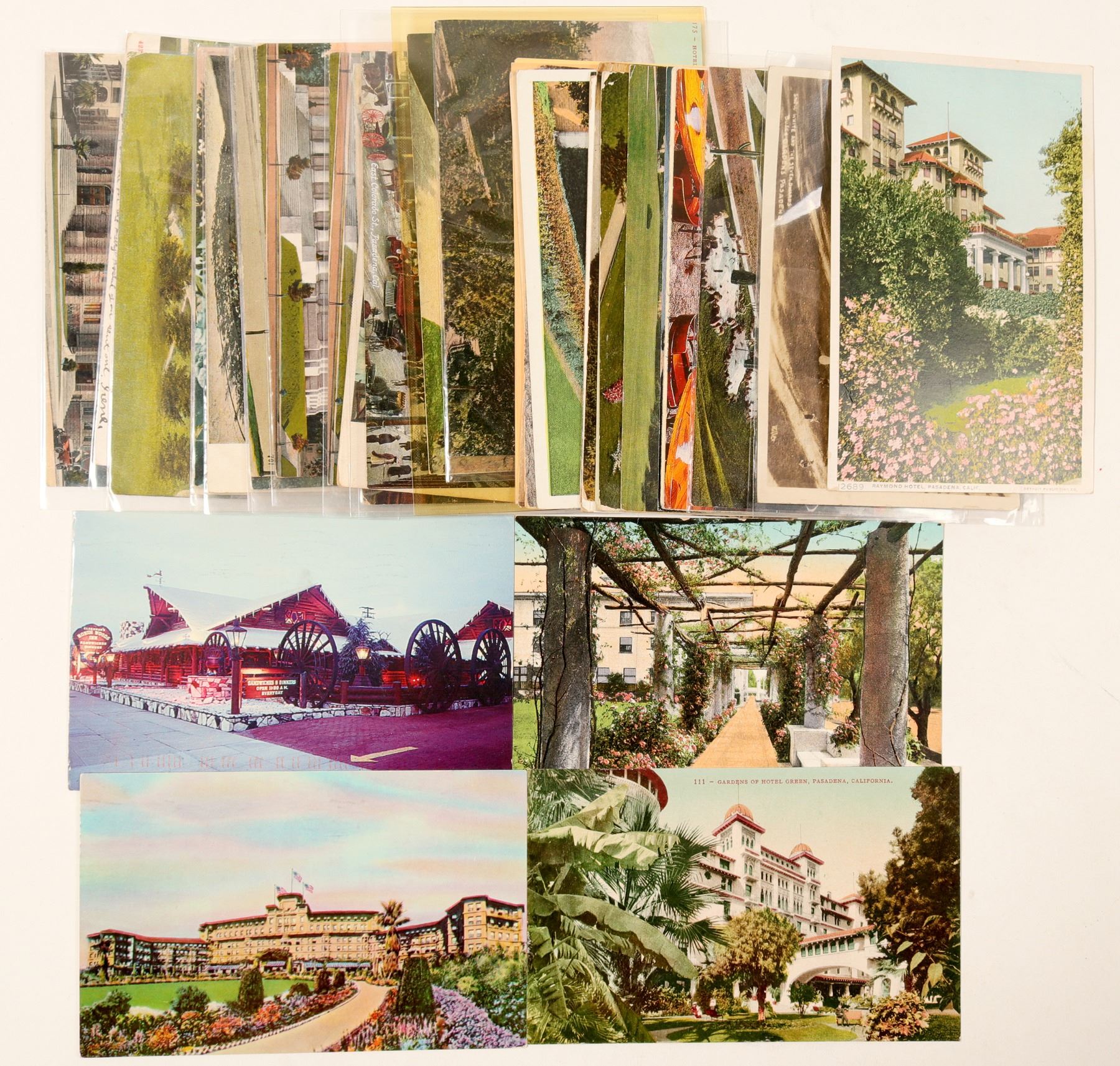 Approx 50 historic Pasadena, CA postcards with 1 RPC- Oldest grape vine, various hotels, Busch Gardens, Christian Science Church. 1 RPC-Busch Gardens Salvatore Falcone Collection