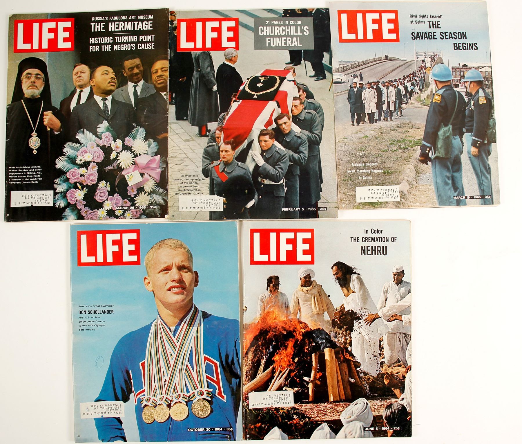 Nice condition copies featuring MLK, Churchill, Don Schollander-ink on cover, Nehru and more State: City: Date: 1964-65