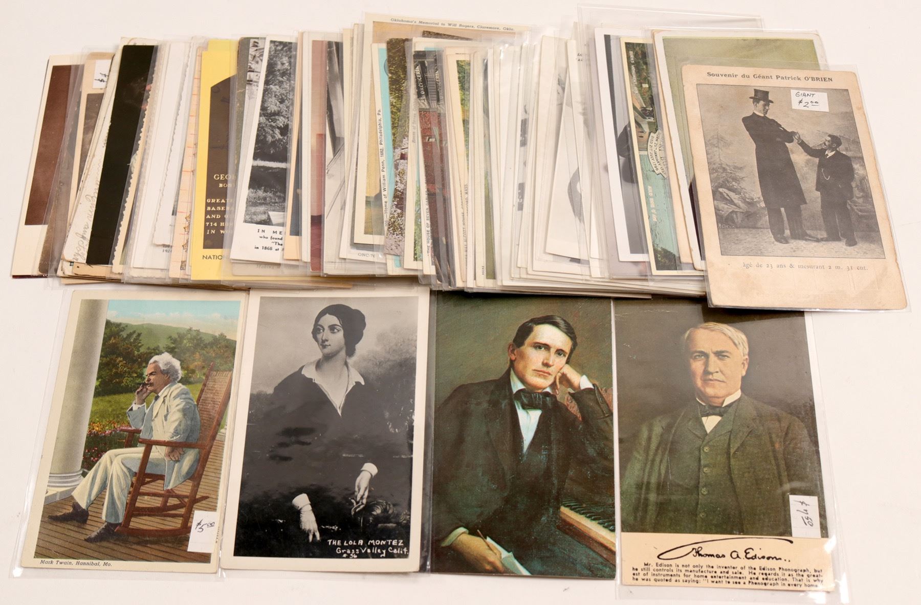 Approx 80 historical people postcards, many RPC's. Edison, Twain, Brigham Young, Poe, Sadat, Earp, Masterson, Revere and more. Mostly USSalvatore Falcone Collection