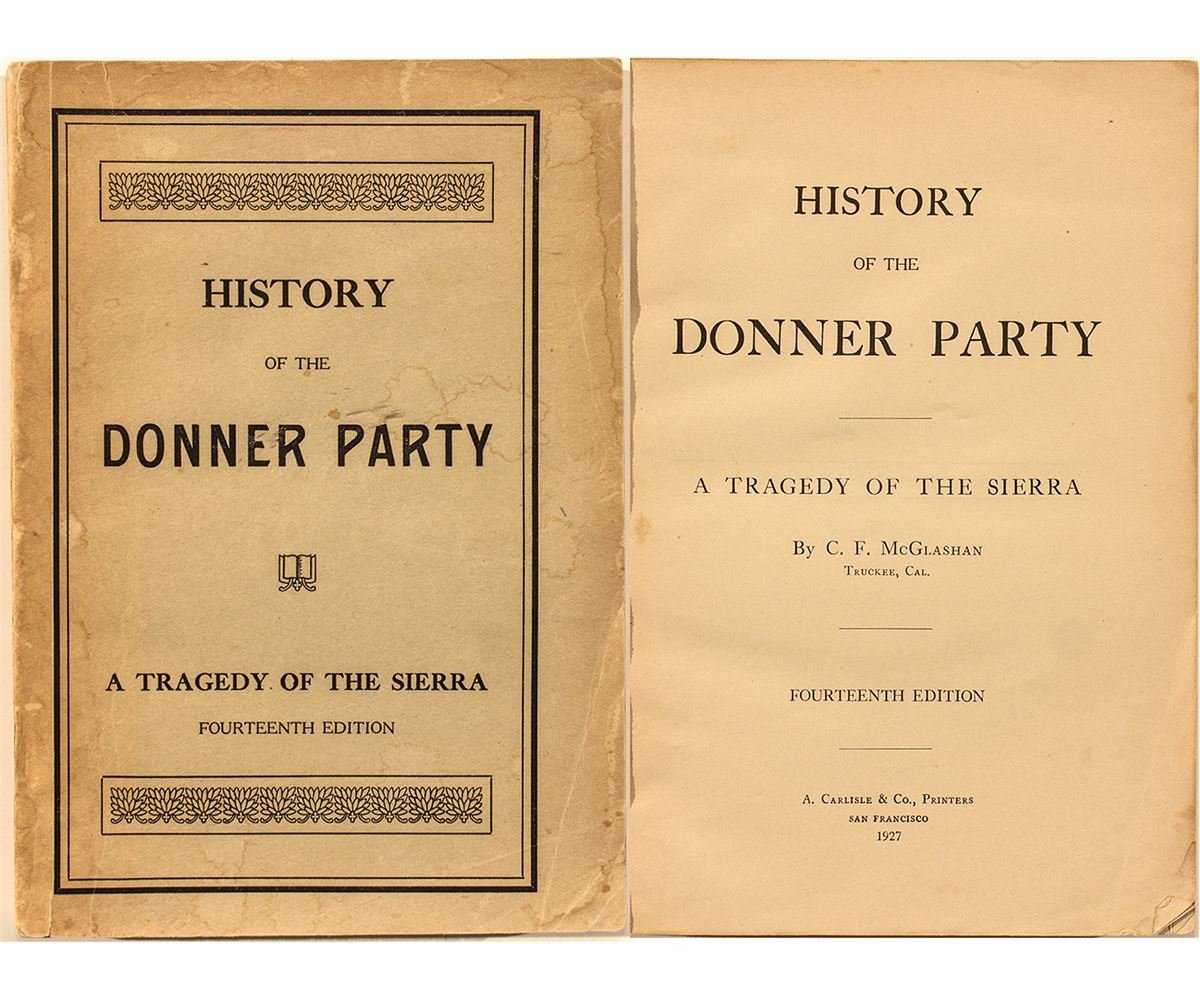 Fourteenth edition: "A Tragedy of the Sierra". Written by C. F. McGlashan (1847-1931), Truckee, California. Printed by A. Carlisle & Co., Printers, San Francisco, 1927. McGlashan became interested in the story of the Donner Party, which in 1846-47 was imprisoned by Sierra snows at Donner Lake. This interest led to a thorough two-year investigation of the Donner tragedy, culminating in the book “History of the Donner Party.” The story was first run in serial form in the Truckee Republican and is McGlashan’s main claim to fame. Soft cover, used. (7.75" x 5.5") 261 pp.