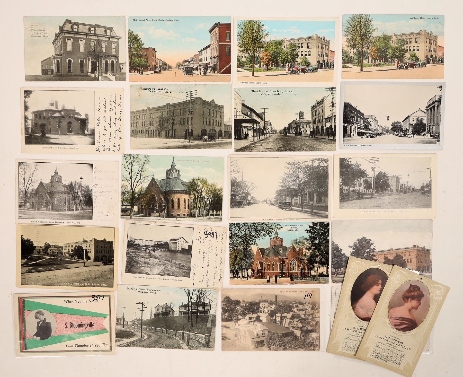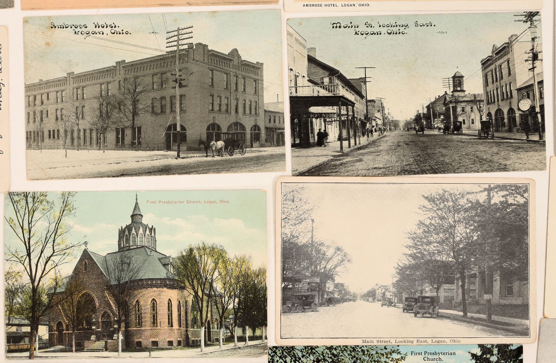 18 Logan postcards plus 1 South Bloomingville. Church, grammar school, Worthington Park, Main Street, Ambrose Hotel, Hocking Falls etc.[ Hocking county Ohio