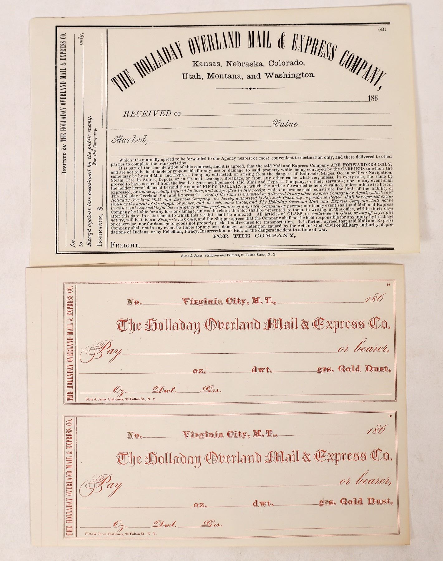 2 Virginia City c. 1860's joined unissued checks. c. 1860's unissued receipt. Virginia City Nevada