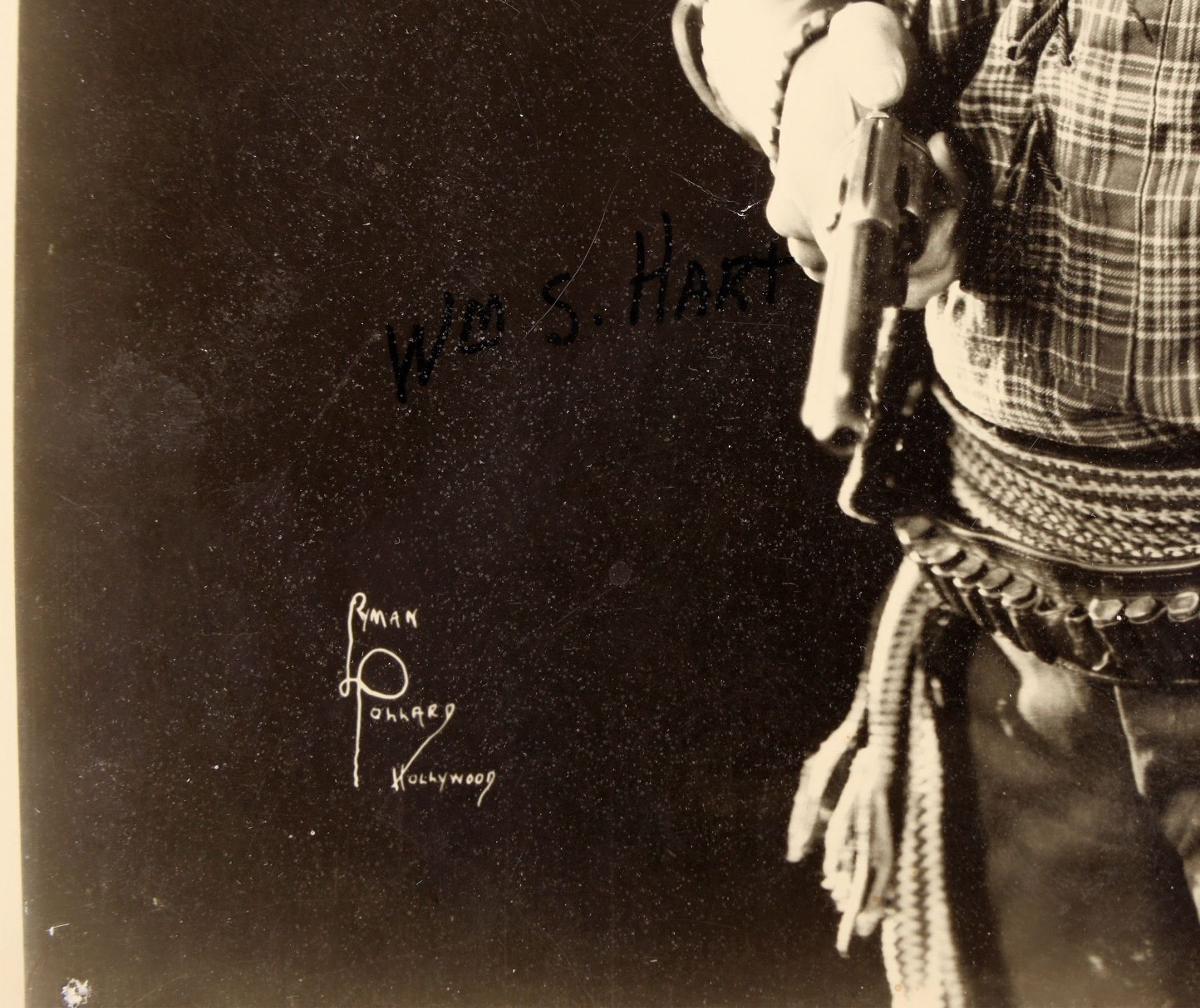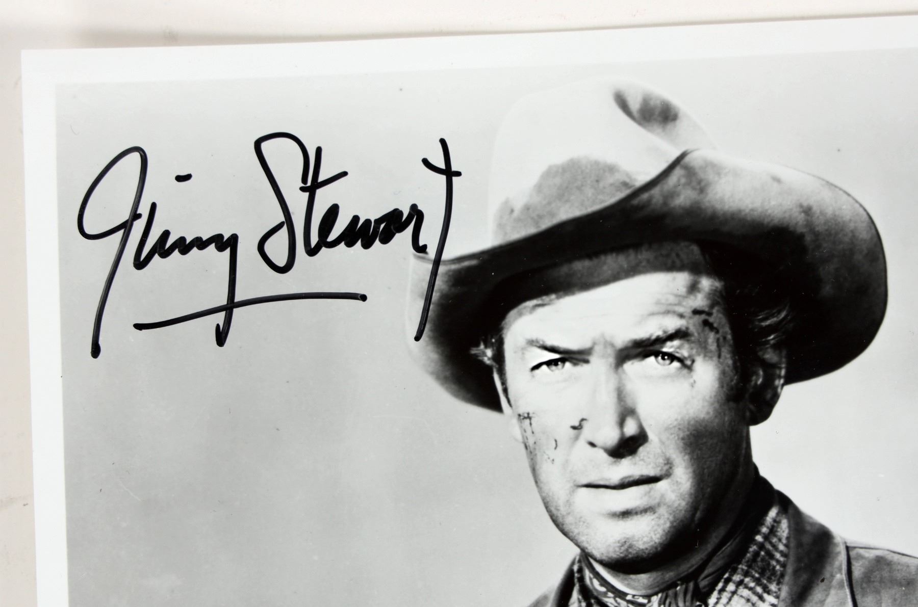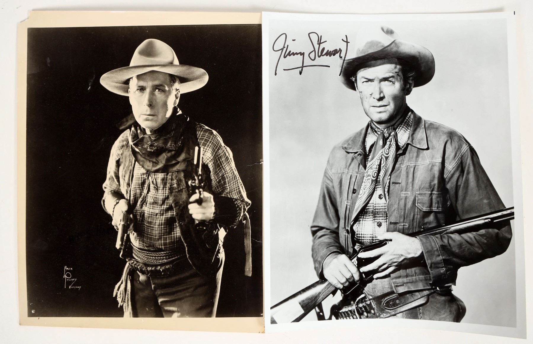 Two 8 x 10" photographs. One is Jimmy Stewart, signed in black marker (signature not verified). The other is William S. Hart. Not signed, though his name is written with marker.