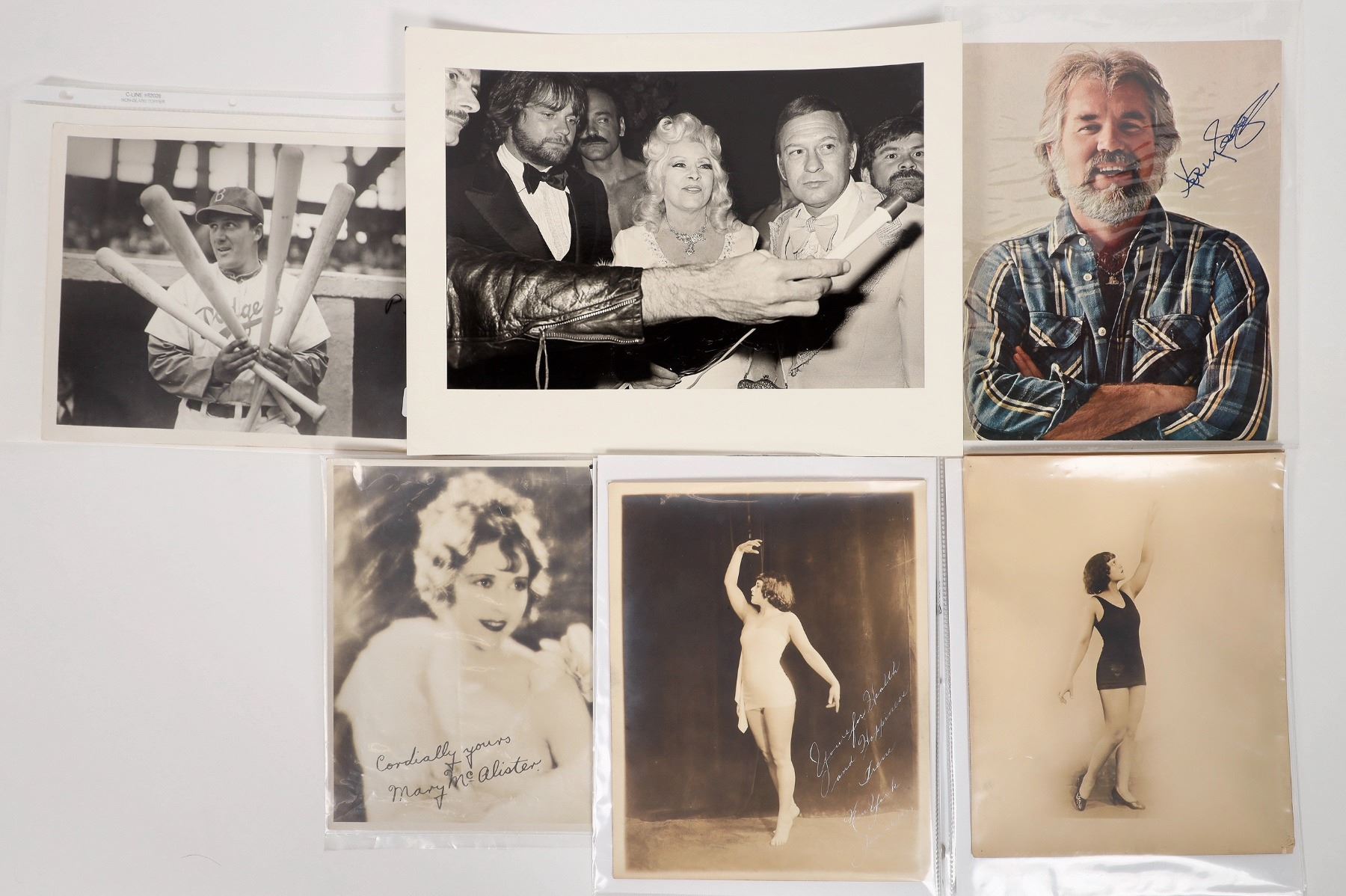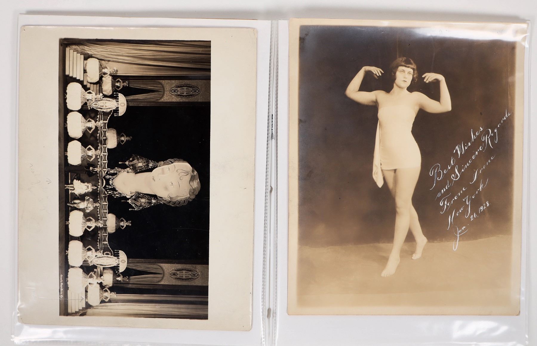 Photo variety includes several from what appears to be poses from The Ziegfeld Follies, specifically a dancer known as Irene. There's also a large photo of actress and sex symbol Mae West and, for a change of pace, a phot of Brooklyn Dodger outfielder, Carl Furillo. All in nice condition. Please see photos for more details.