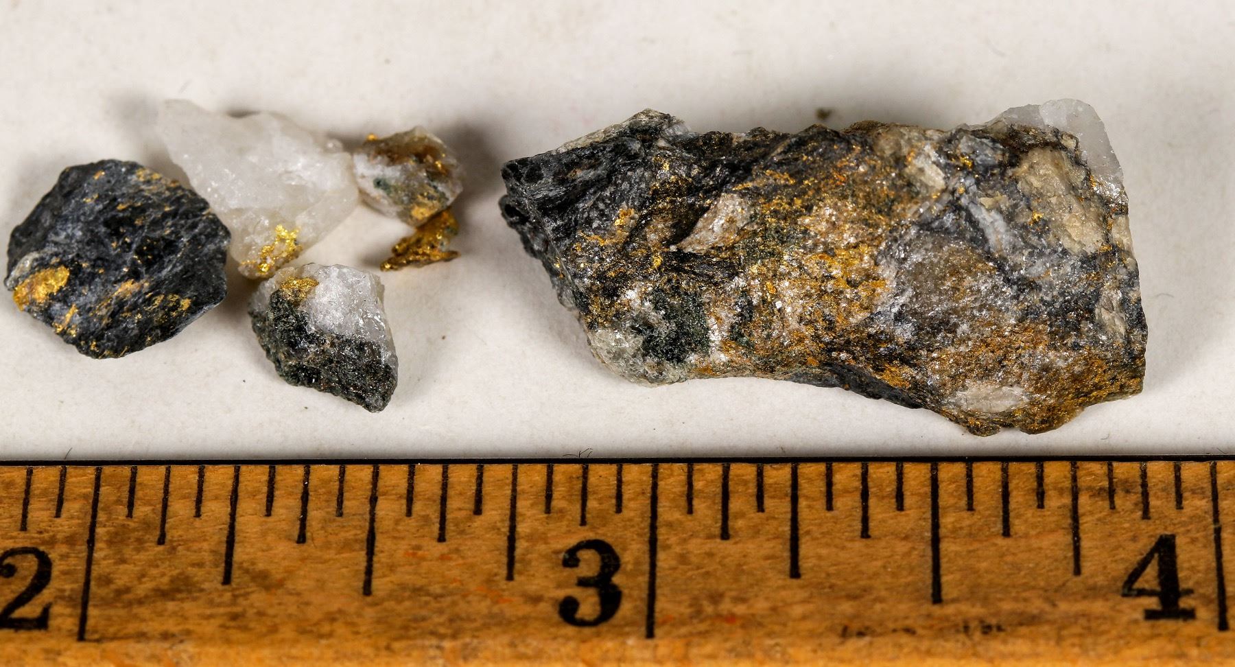 This lot consists of 5 or so small pieces of high grade from the Homestake Mine. Please see photos for dimensions and more details.