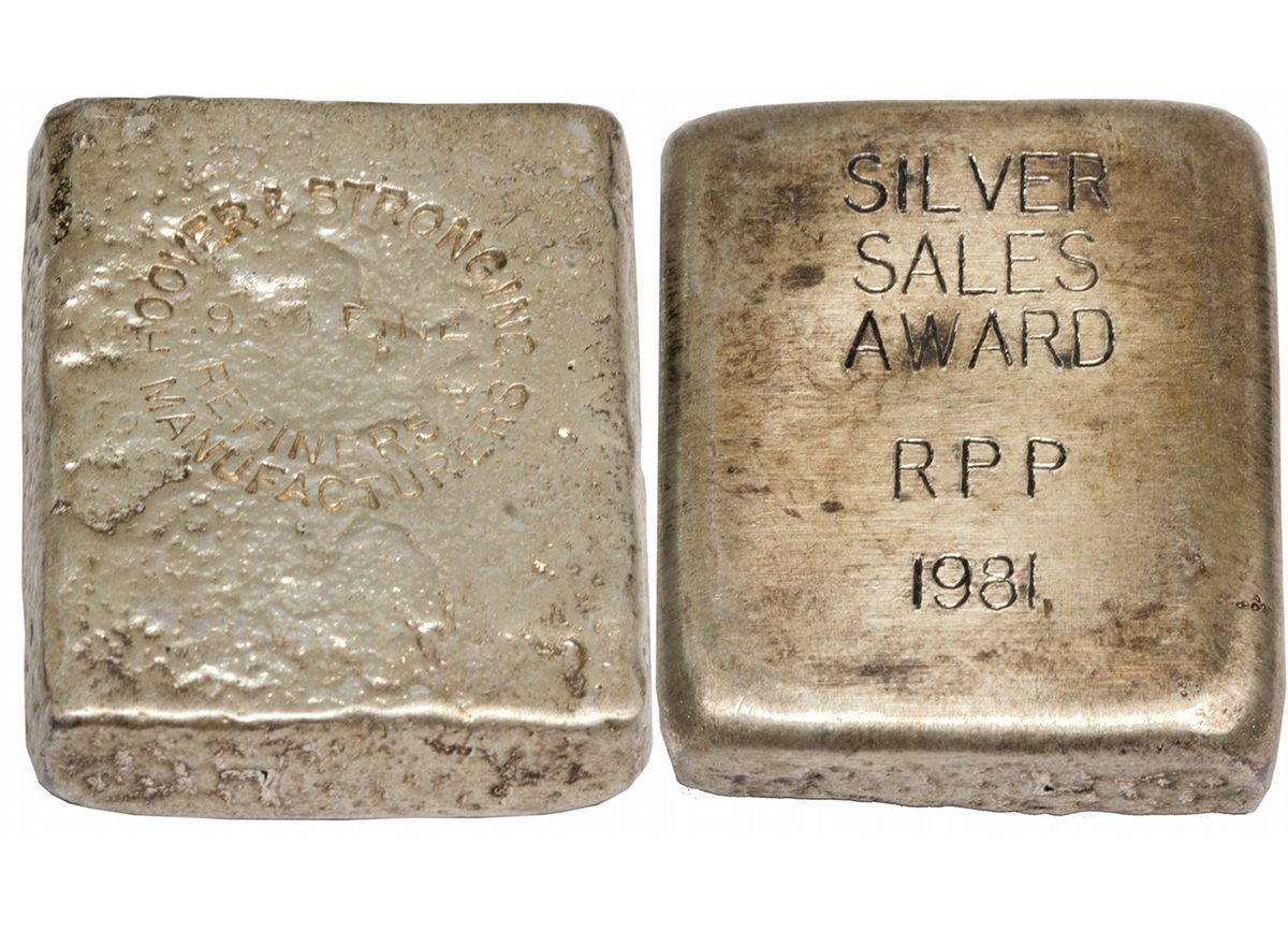 Hoover and Strong Inc. Refiners and Manufacturers 1981 Silver Sales Award RPP. 5 troy oz, .999 fine.City: RichmondCounty: State: VADate: 1981