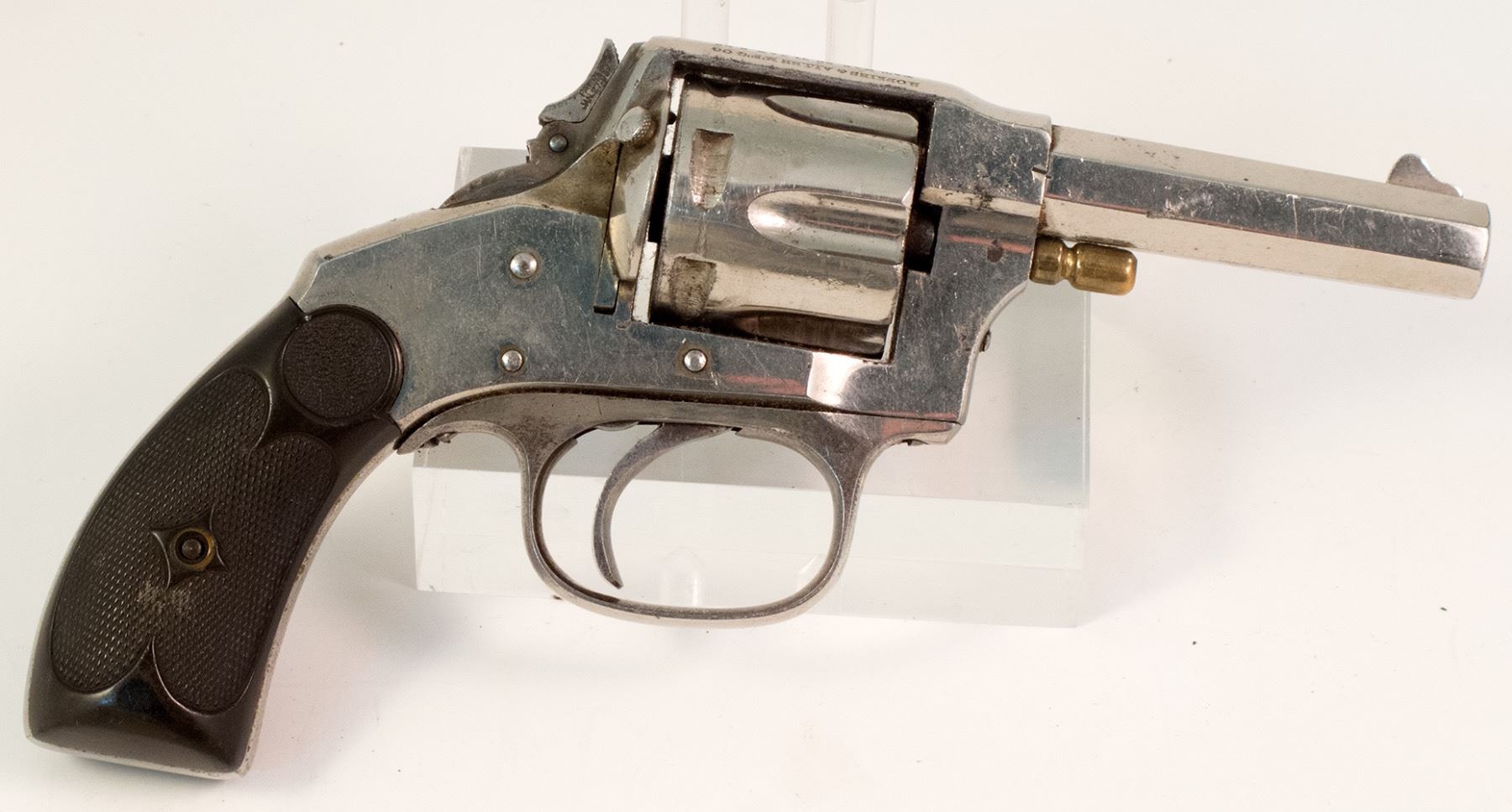 Hopkins & Allen double action .32 caliber pocket pistol, very nice overall, beautiful checkered hard rubber grips, and very unique folding hammer for pocket carry. "X.L. Double Action" model .32 caliber center fire. Needs oiling. Nickel plated. Patent date March 28, 1871 - Jan 5, 1886. Nice overall. Black Powder Antique Cartridge Revolver. May require FFL or C&R in some municipalities. State: City: Date: ID# 39800