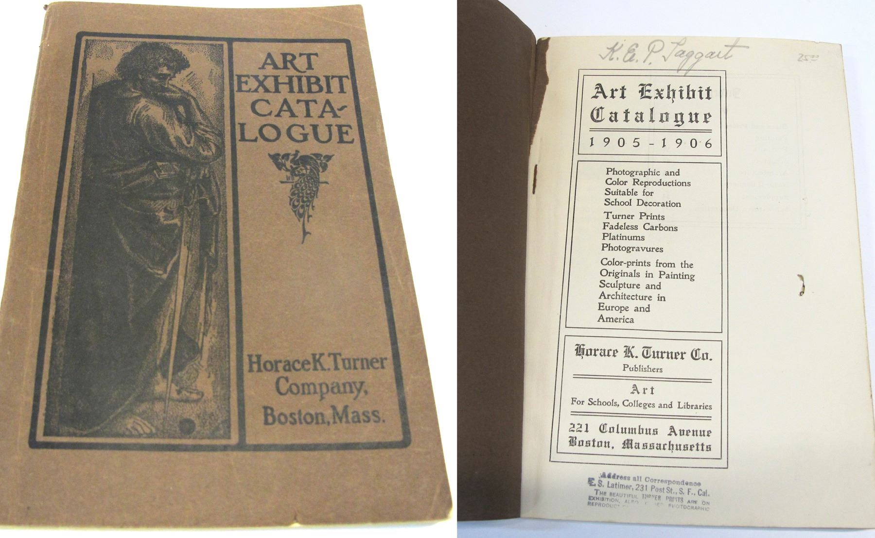 Brown cover, Boston Mass. 1905-1906. 66 pages with b/w photos of many famous historical paintings. 8.5" x 5.