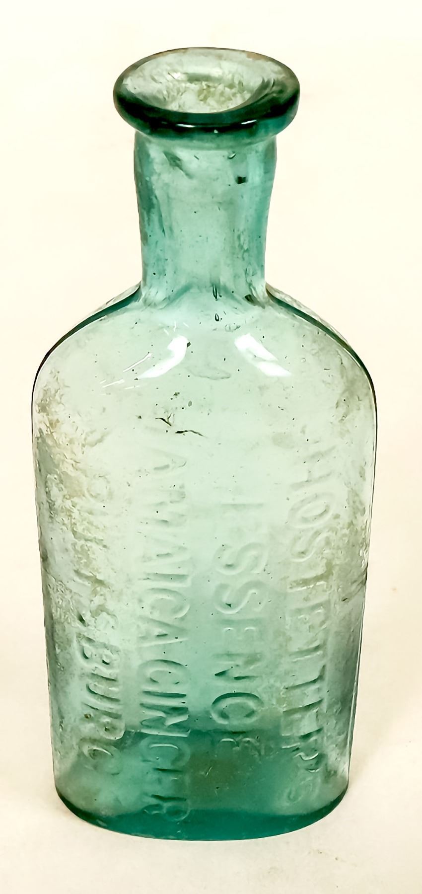 Light aqua Hostetter's/Essence/Jamaica Ginger/Pittsburg 5.5" bottle. No apparent chips or cracks.