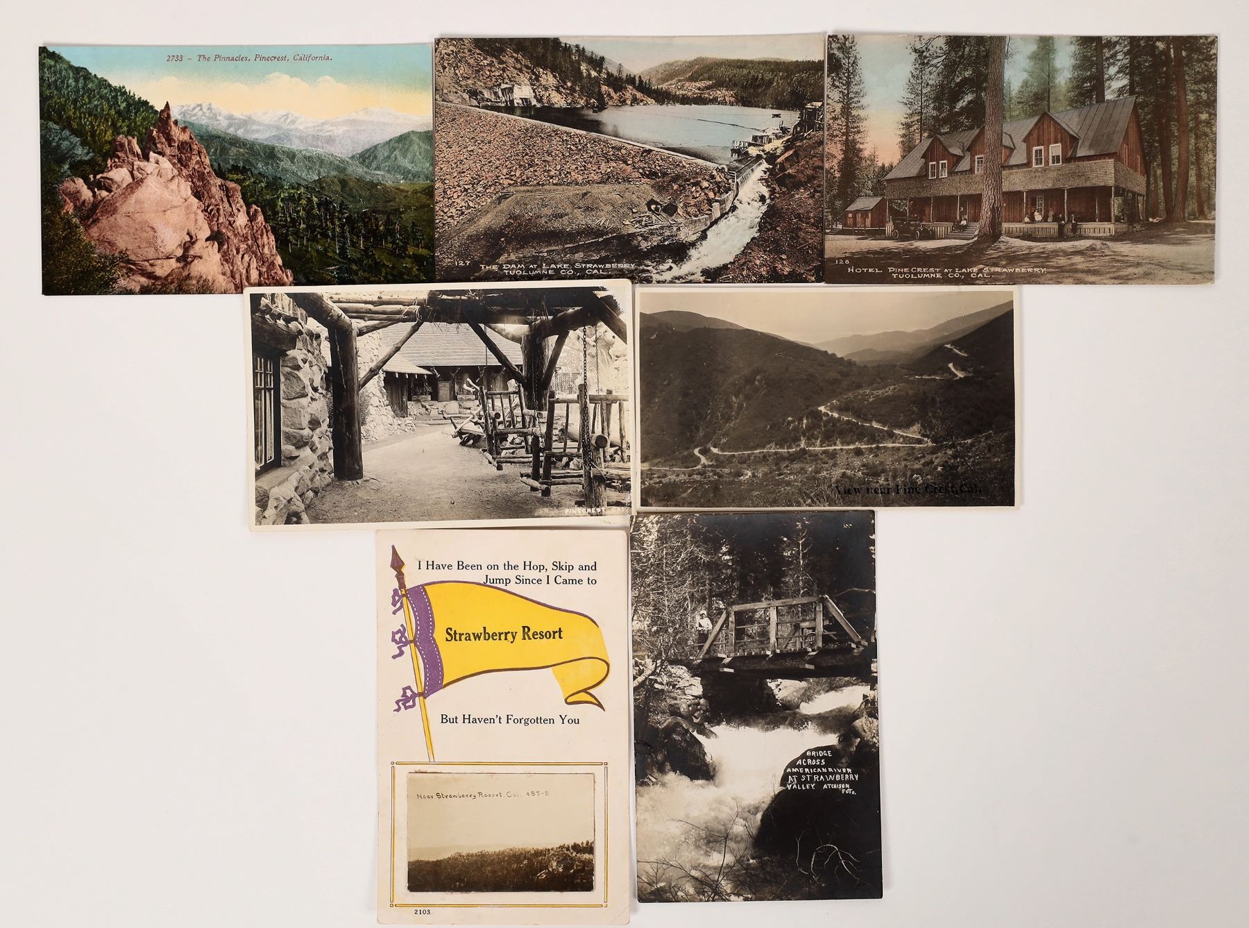Lot of 7. Rare pre-1916 post cards. Three RPC's. One greeting post card. The Historic Hotel Pinecrest at Lake Strawberry in Tuolumne County Calif., renamed in the 1960's to Pinecrest Lake. This was a very popular resort . The lake was created as a result of building a dam. The hotel no longer exist and is believed to have been destroyed in the 1950's. California Strawberry 1900-16 Ken Prag Collection