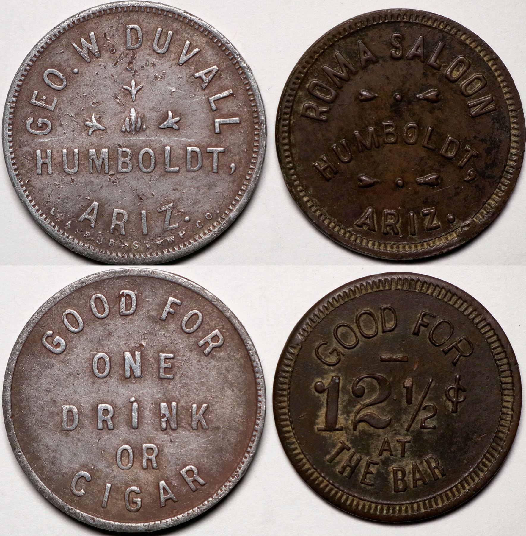 2) George W. Duvall/Humboldt / Ariz. // GF/One Drink/ Or/Cigar. 40mm. R6