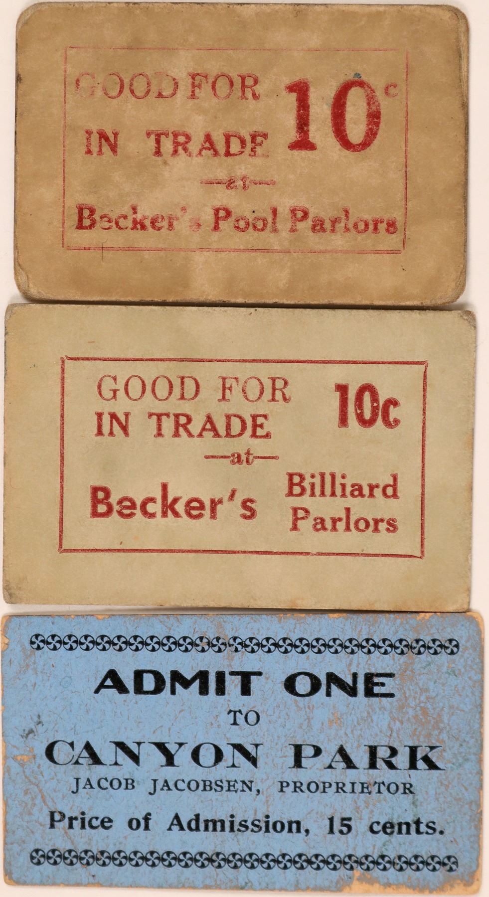 Lot of three: two from Becker's Billiard Parlors in Ferndale; one from Canyon Park. Ex: Ron Lerch Collection.