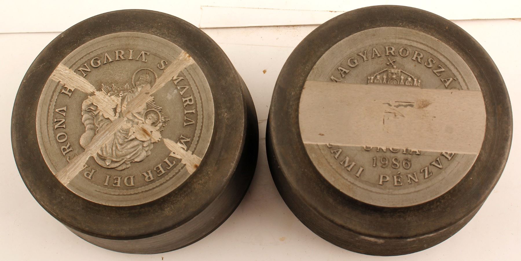 Two dies from a medal made in 1986. Date: 1986 Location: Hungary HWAC# 63628