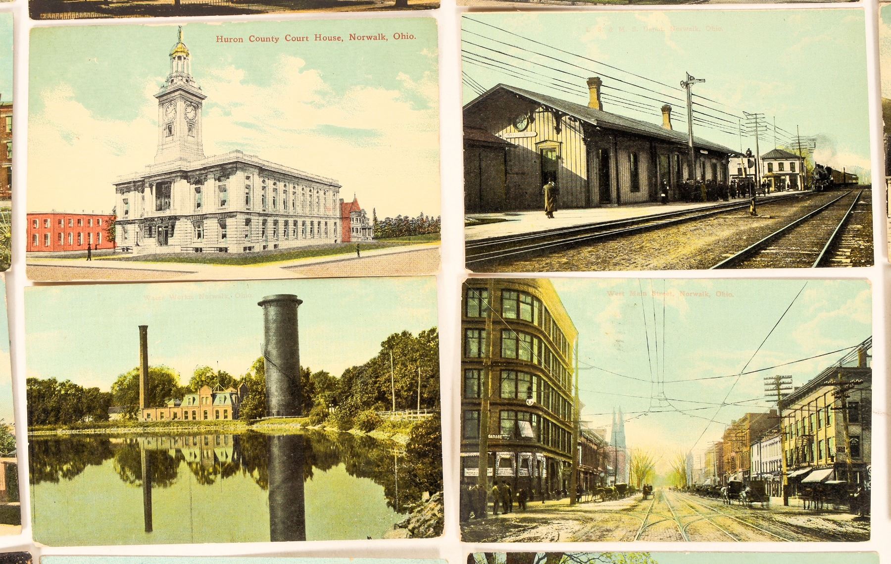 Collection of 24 Norwalk postcards, c1908-25. Street views, water works, Hotel Avalon, court house, armory, central high school etc.[ Norwalk Ohio