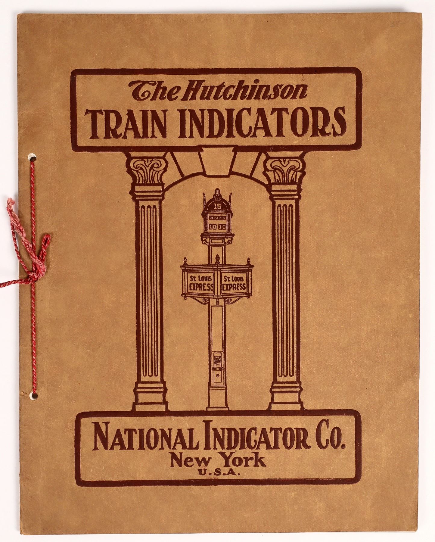 Rare. National Indicator Company, New York. Brown wrappers, string binding, 38 pp. full of B&W photographs of train terminals and diagrams of the train indicators offered by the company. No printer or publication date, but text mentions 1909. 11.75 x 9"