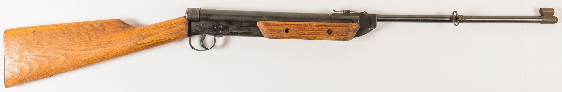 This IMC pellet gun is marked S/N A399X 1979 in 4.5 mm cal. The stock is rough and the barrel rusted with 60% bluing remaining.