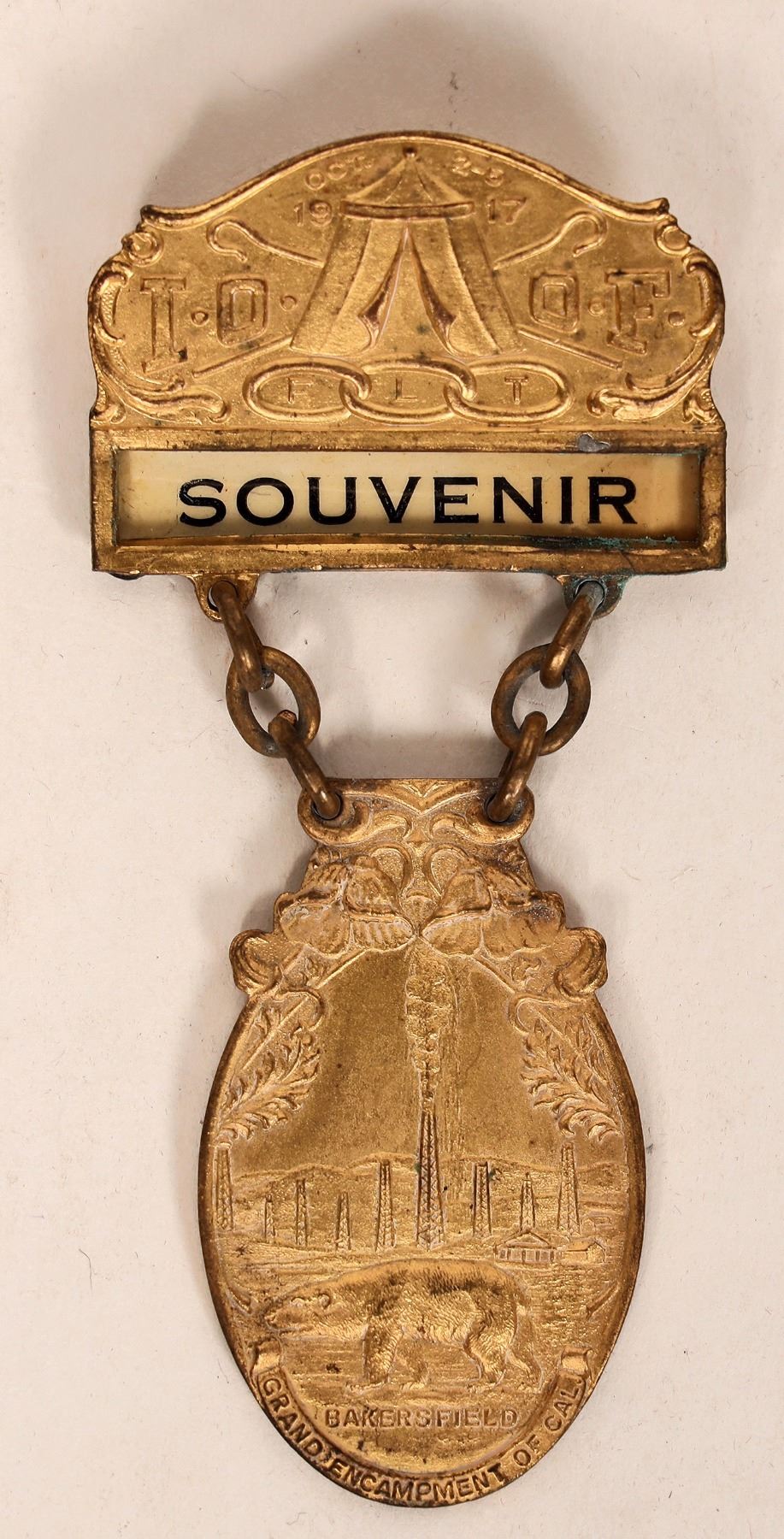 1917 Bakersfield IOOF breastbadge with a bear and oil derricks theme. [Bakersfield] [California]