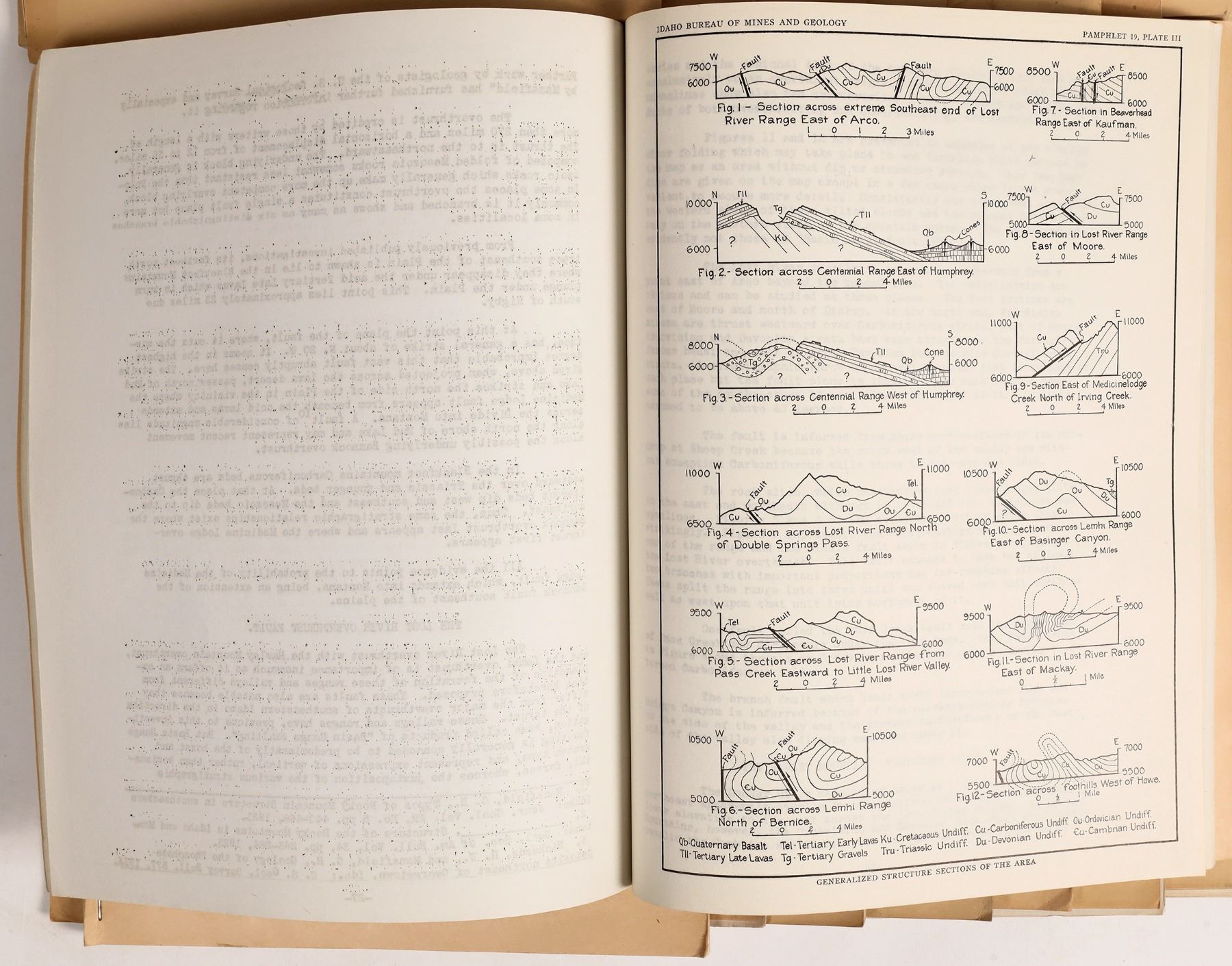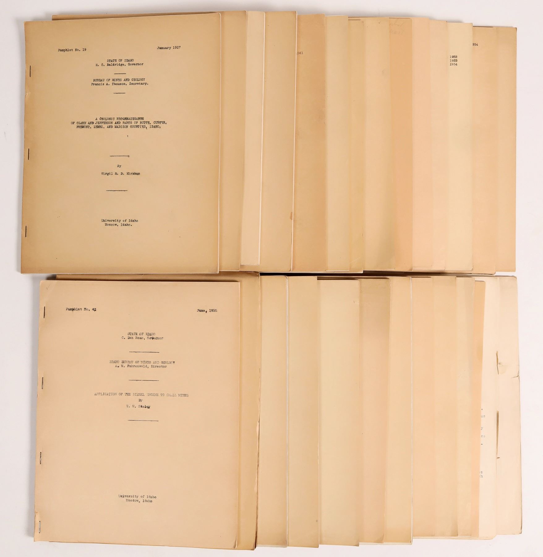 29 Idaho Bureau of Mines reports, c. 1924-39. Ore Deposits in the Tertiary Lava in the Salmon River Mountains, Portland Cement Materials, Mining Activity in the North Fork of the Clearwater River Area, Prospecting for Gold Ores, The Vienna District, Metallurgical Study of Idaho Placer Sand and more.