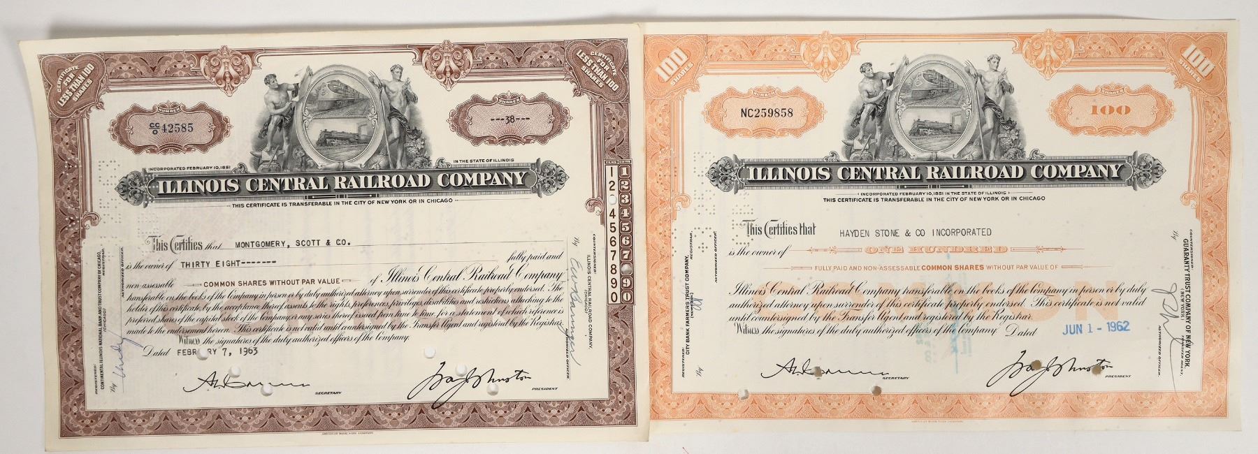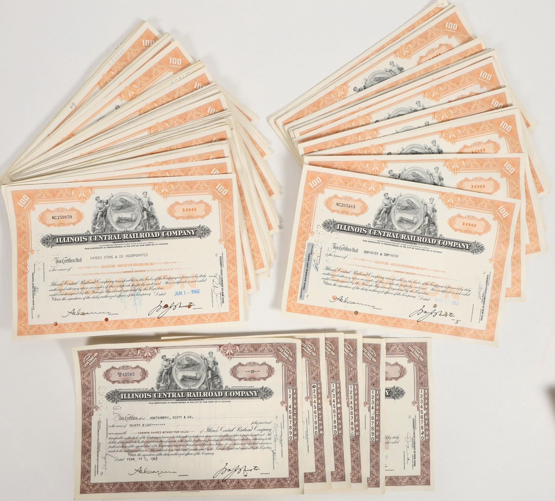 Approx 100. I/C. Issued 1957-63. Fine cond. Two varieties. Illinois Central Railroad Co, , American BNC printer.