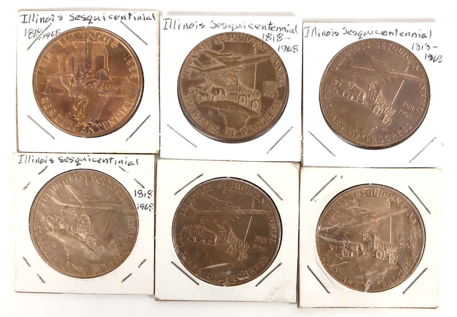 Six medals from the Illinois Sesquicentennial of 1968._x000D_