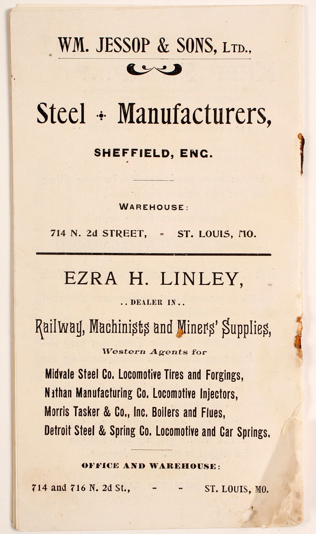 Catalogue for Works at East Point on Central and A. & W. P. R. R. Manufacturers of Solid and Inserted Tooth Circular Saws. Dealers in Mill Supplies. 31pp softcover booklet with staple binding. Covers detaching.6.25" x 3.5".Not dated.