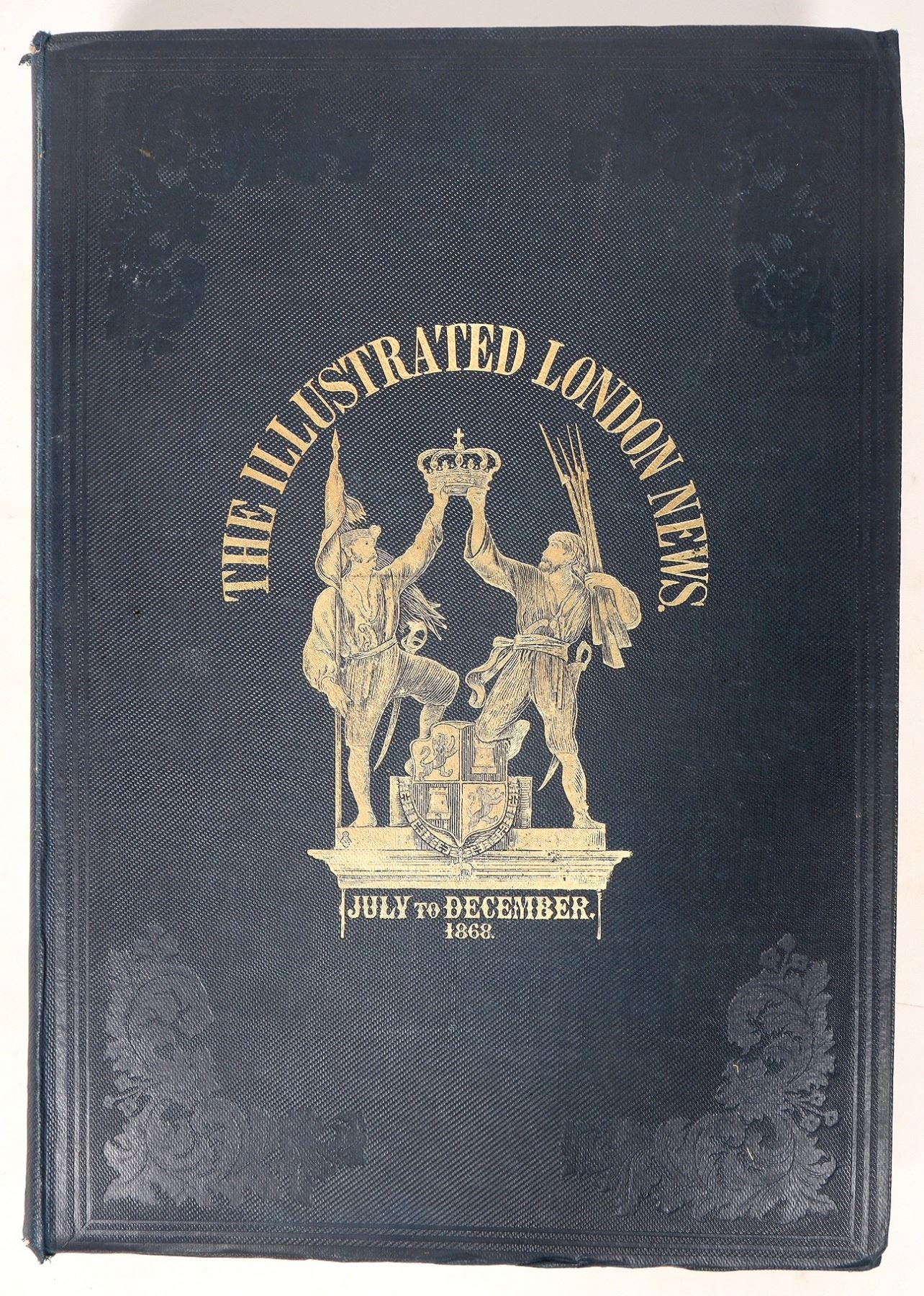 Bound, The Illustrated London News, July-December, 1868. Articles include The Abyssian Expedition, Alaska, Disaster of the Chester and Holyhead Railway etc. Binding has a gilt cover. Ex Cecil B. De Mille library. Cecil B. DeMille was called "The Master of the Biblical Epic" and was one of the founding fathers of the studio system in Hollywood, when he, Jesse Laskey and Samuel Goldwyn founded the first production company in "Tinsel Town" called Laskey Famous Players" in 1913. Their first film "The Squaw Man" was also the first film shot in an old barn on Selma and Vine. When Laskey moved on to form Paramount Pictures, DeMille was his main director, helming such spectacles as "The Ten Commandments (1923 & 1956), "King of Kings," (1927) "Cleopatra," (1934) and many more. DeMille had a home on Adams Blvd in Los Angeles and these books came from his private library. 16.25x11.5". Spine has light top and bottom wear.. Bent board corners. Please inspect.