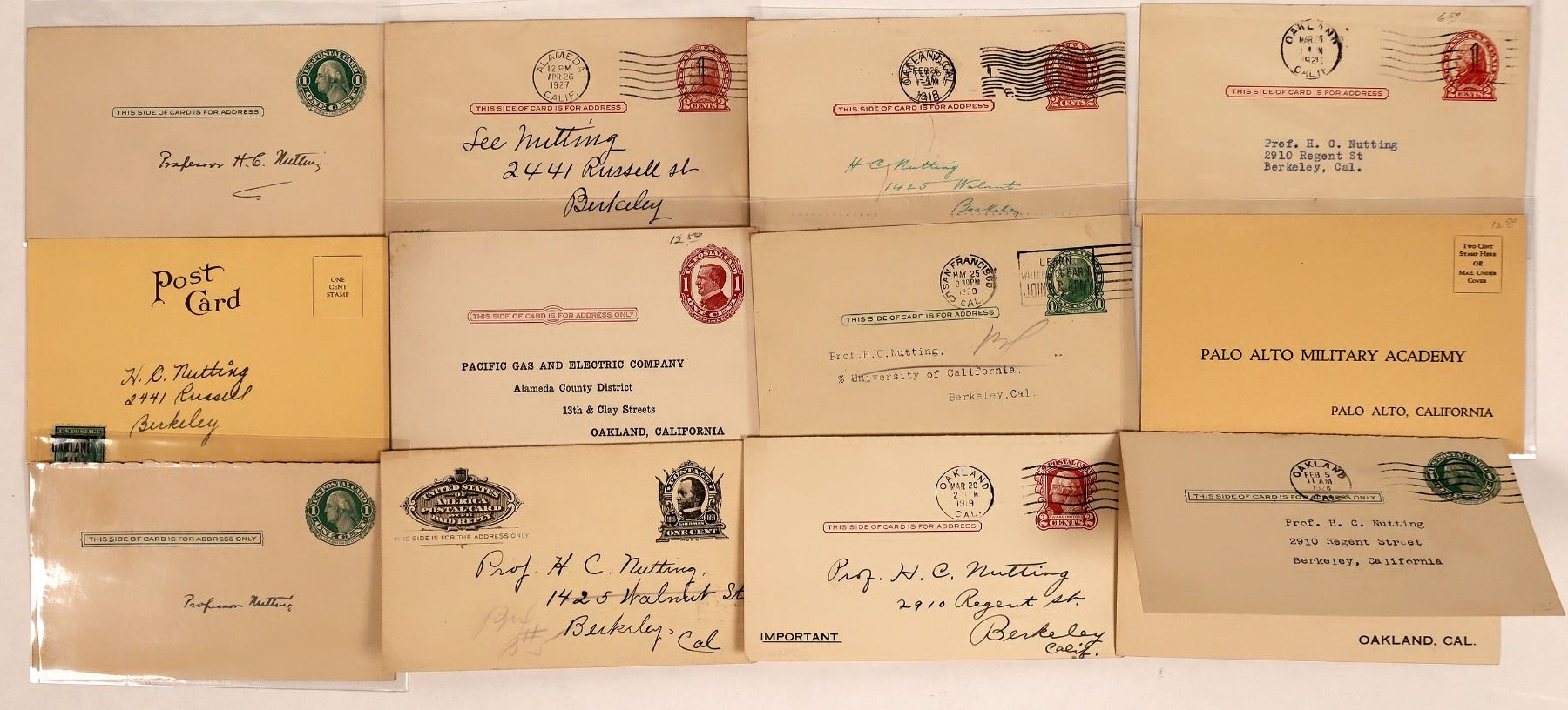Lot of 11. Postcards w/imprinted stamps , 1c & 2c. Cancellations are dated 1910-27, Oakland and Alameda, Calif. From I.e; Phi Beta Kapa, WALTER A. KRUG insurance, Oakland Tribune, Pablo Alto Military Academy. All in very good condition and most ar in plastic sleeves.