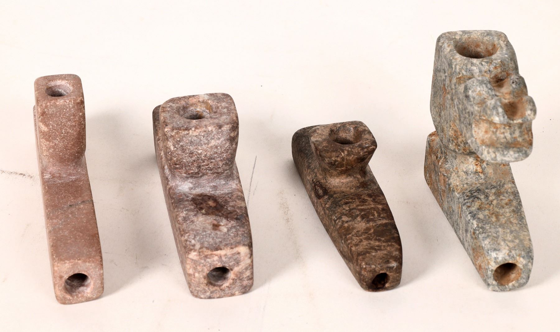 Pipe bowls made primarily for the tourist trade at the Pine Ridge Reservation in Montana. They do not appear to be Catlinite (Pipestone), but are very well made and should enhance any collection, You can also carve some pipe stems and hold your own pow wow. Please see photos for more details. Pine Ridge Montana