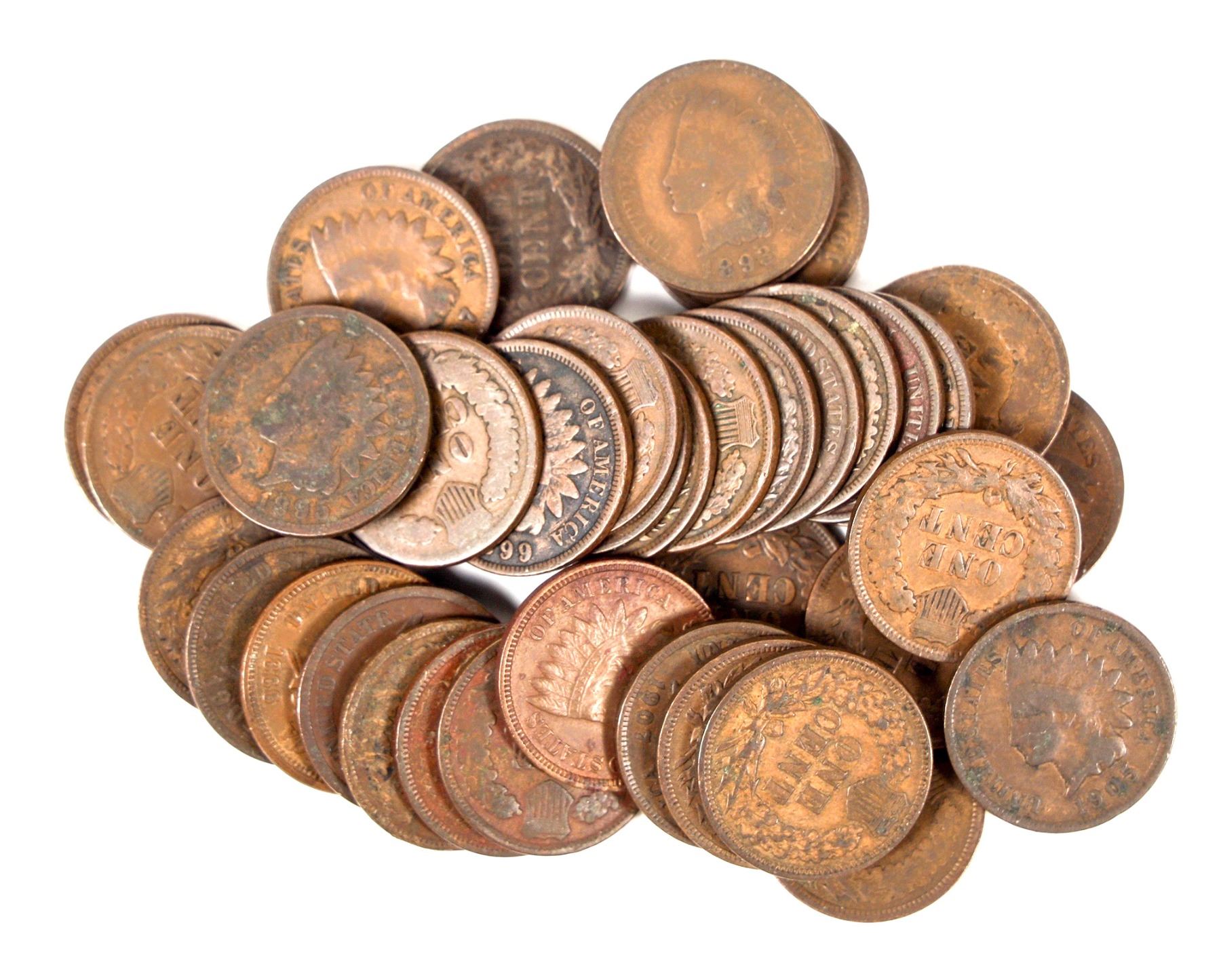 Thirty eight Indian head cents: 26 post 1900. 1866, 1873, 1880, 1885, 1888, 1890, 1893, 1897, 1899 (3), and one bent.