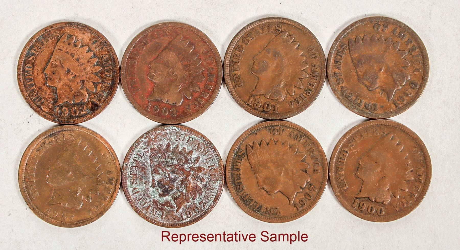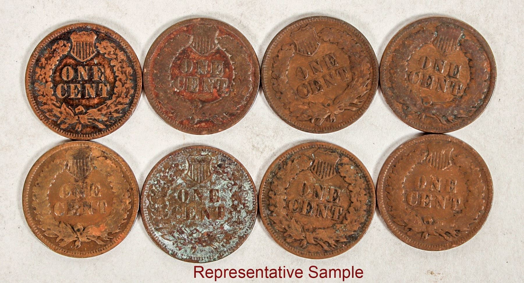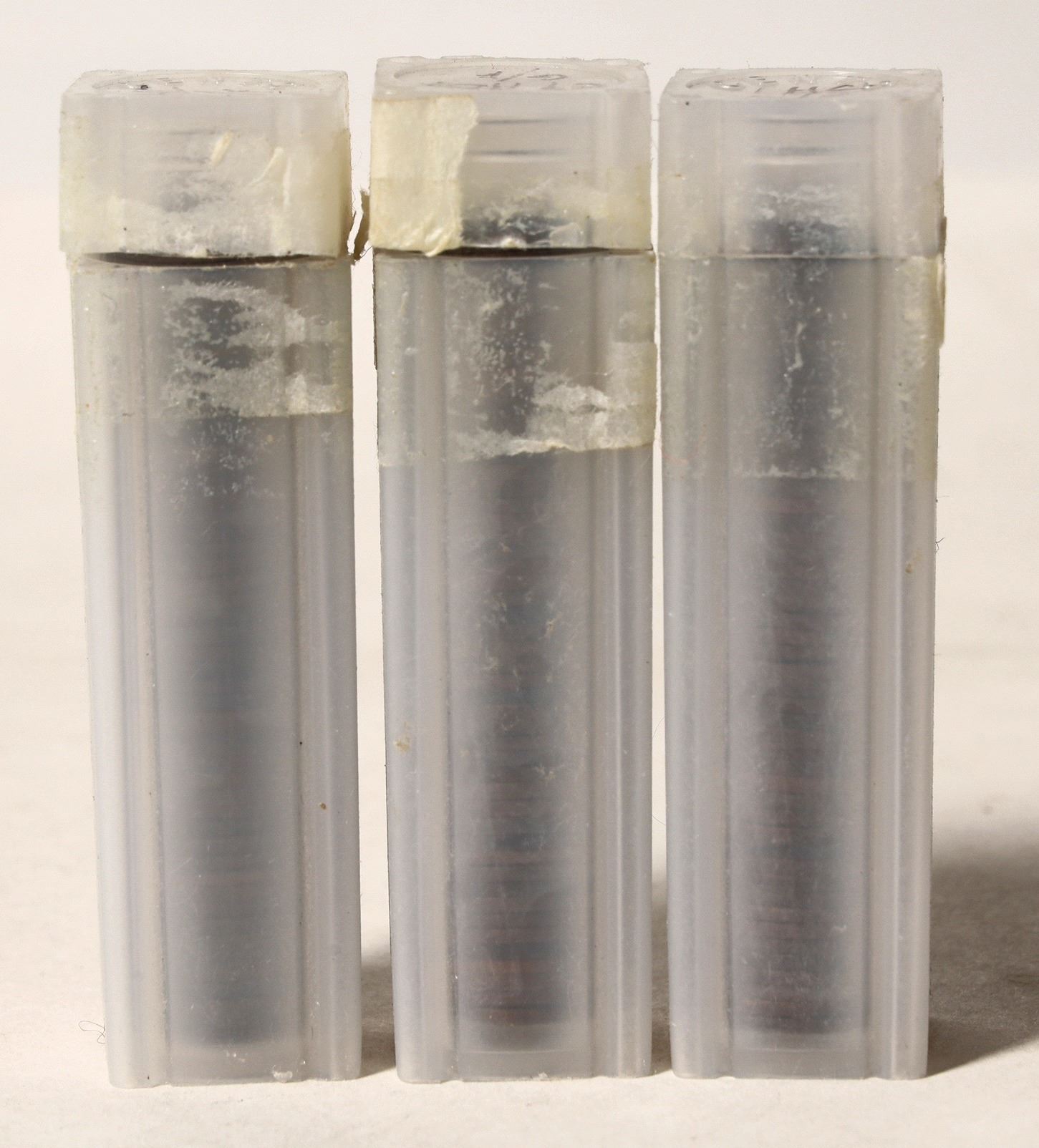 Three rolls of Indian head pennies 150 coins. G-F condition.