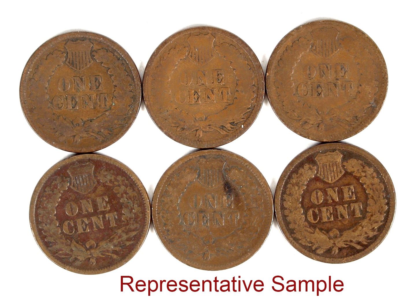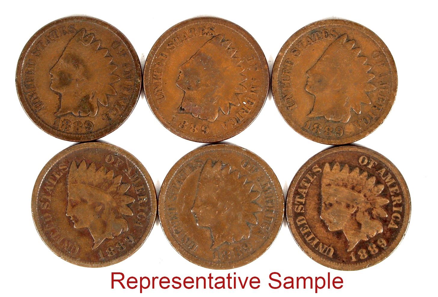 Indian Head cents in AG-VG condition: 1865 (2); 1881 (2); 1882 (3); 1884; 1887 (6); 1888 (6); 1889 (20).