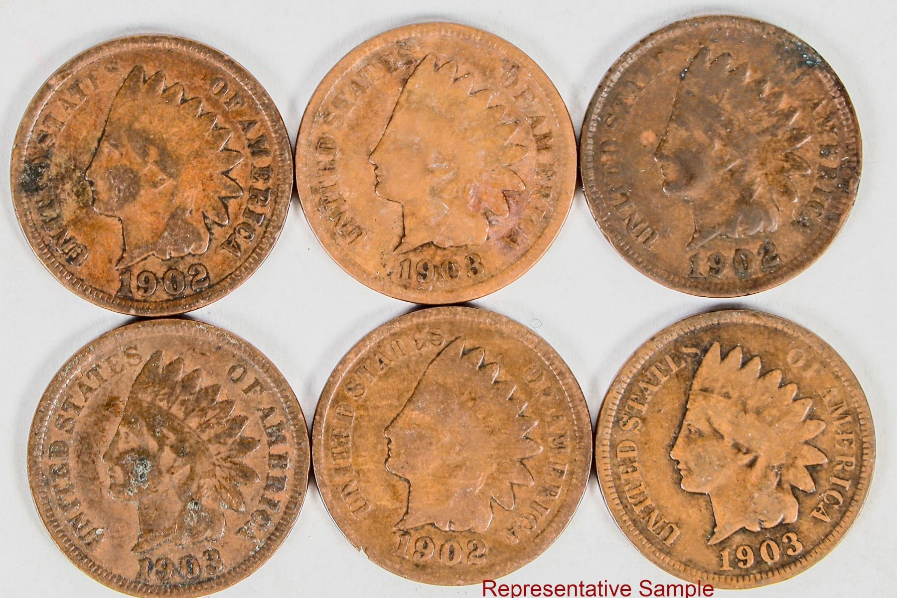 Hoard of approximately 246 Indian head cents dated in the 1900s. AG-F condition.